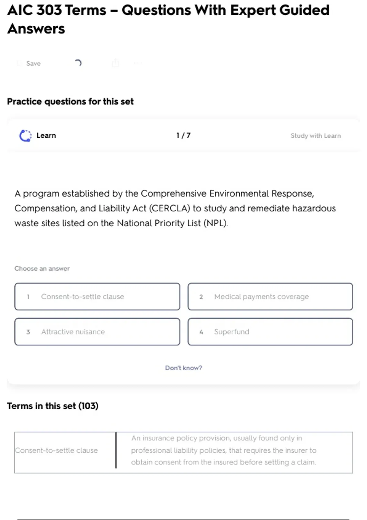 Learn 1 /7 Study with Learn