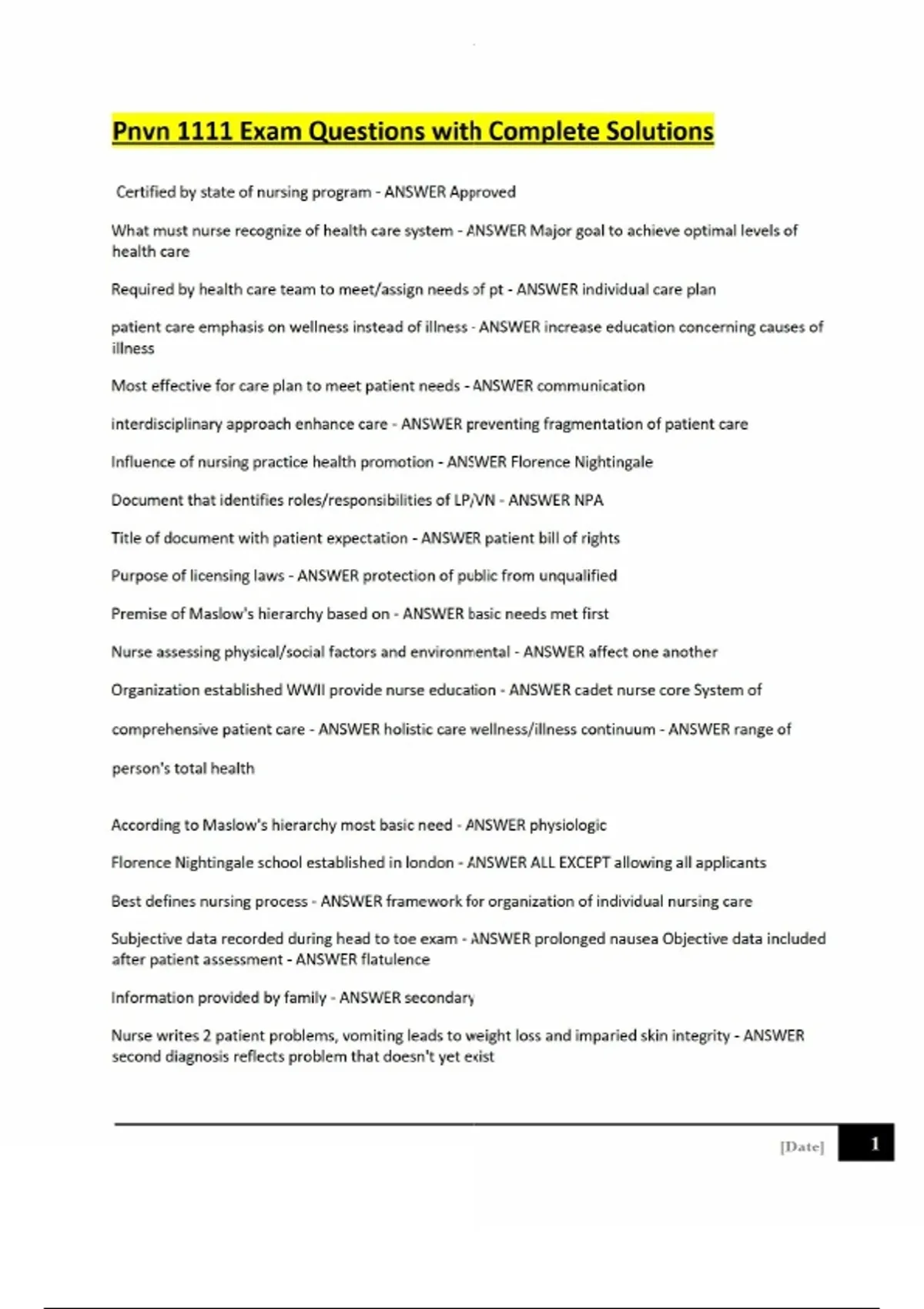 Pnvn 1111 Exam Questions with Complete Solutions