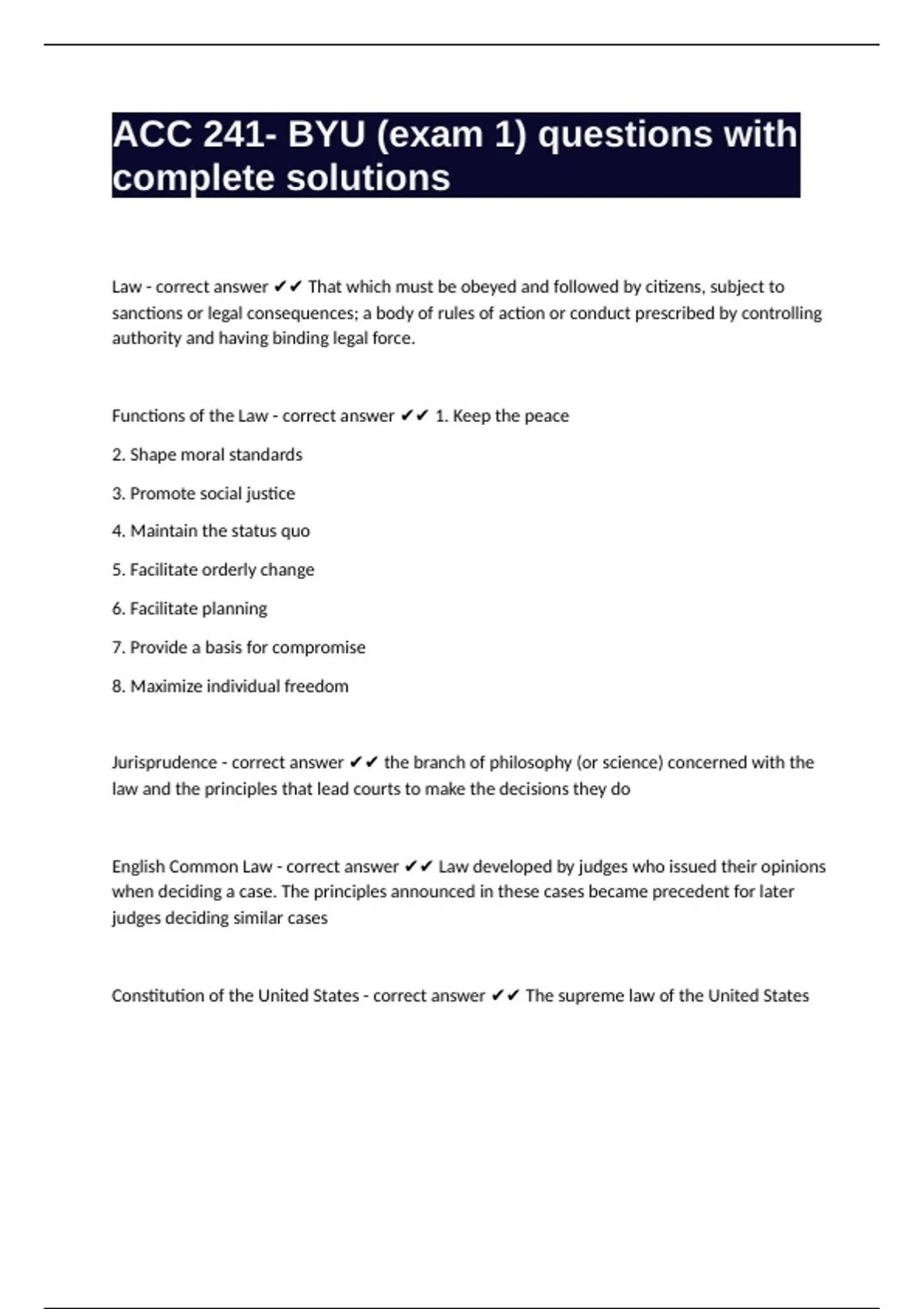 Functions of the Law - correct answer ✔✔ 1. Keep the peace
