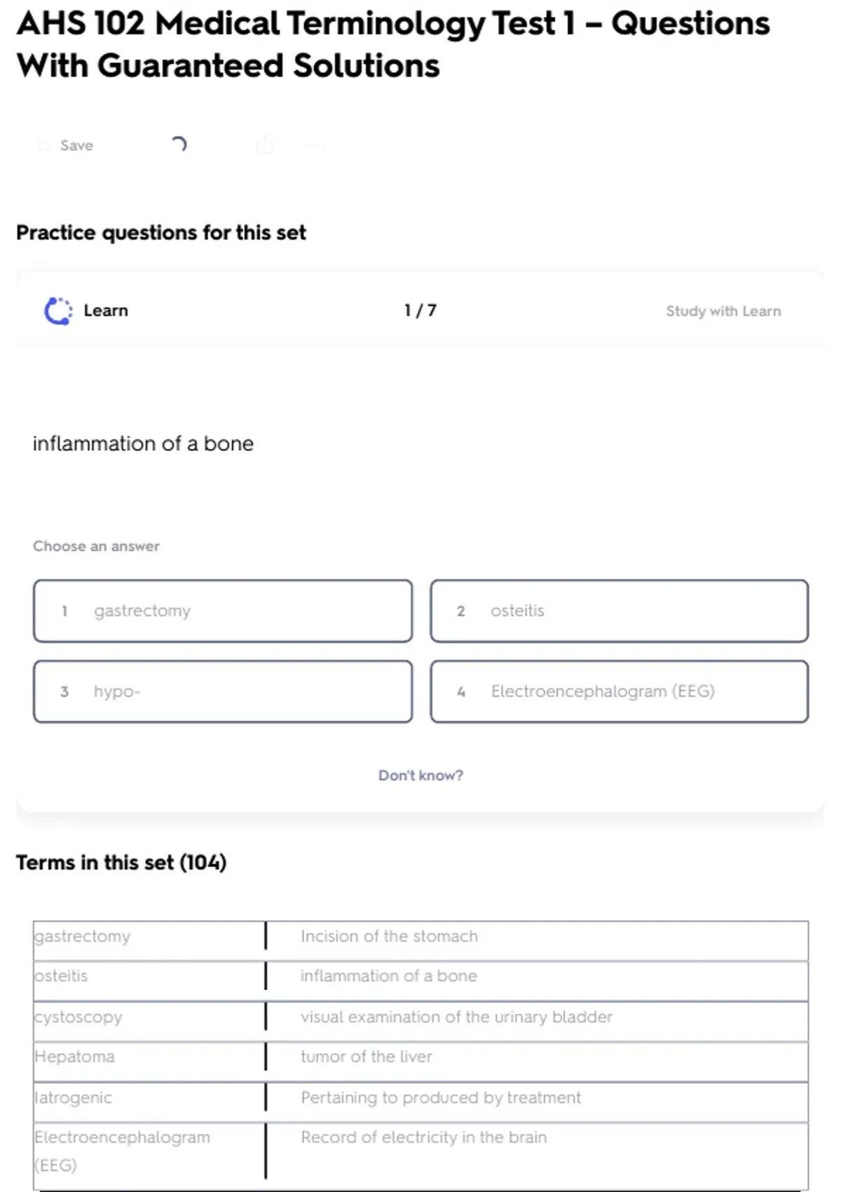 AHS 102 Medical Terminology Test 1 – Questions With Guaranteed Solutions