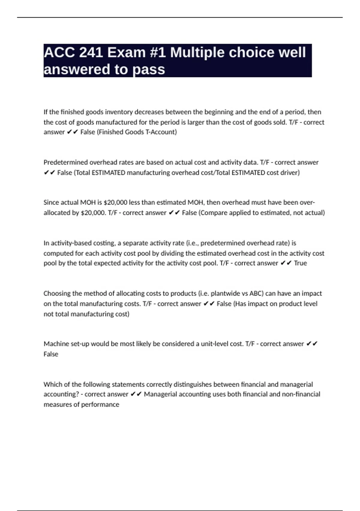 pool by the total expected activity for the activity cost pool. T/F - correct answer ✔✔ True