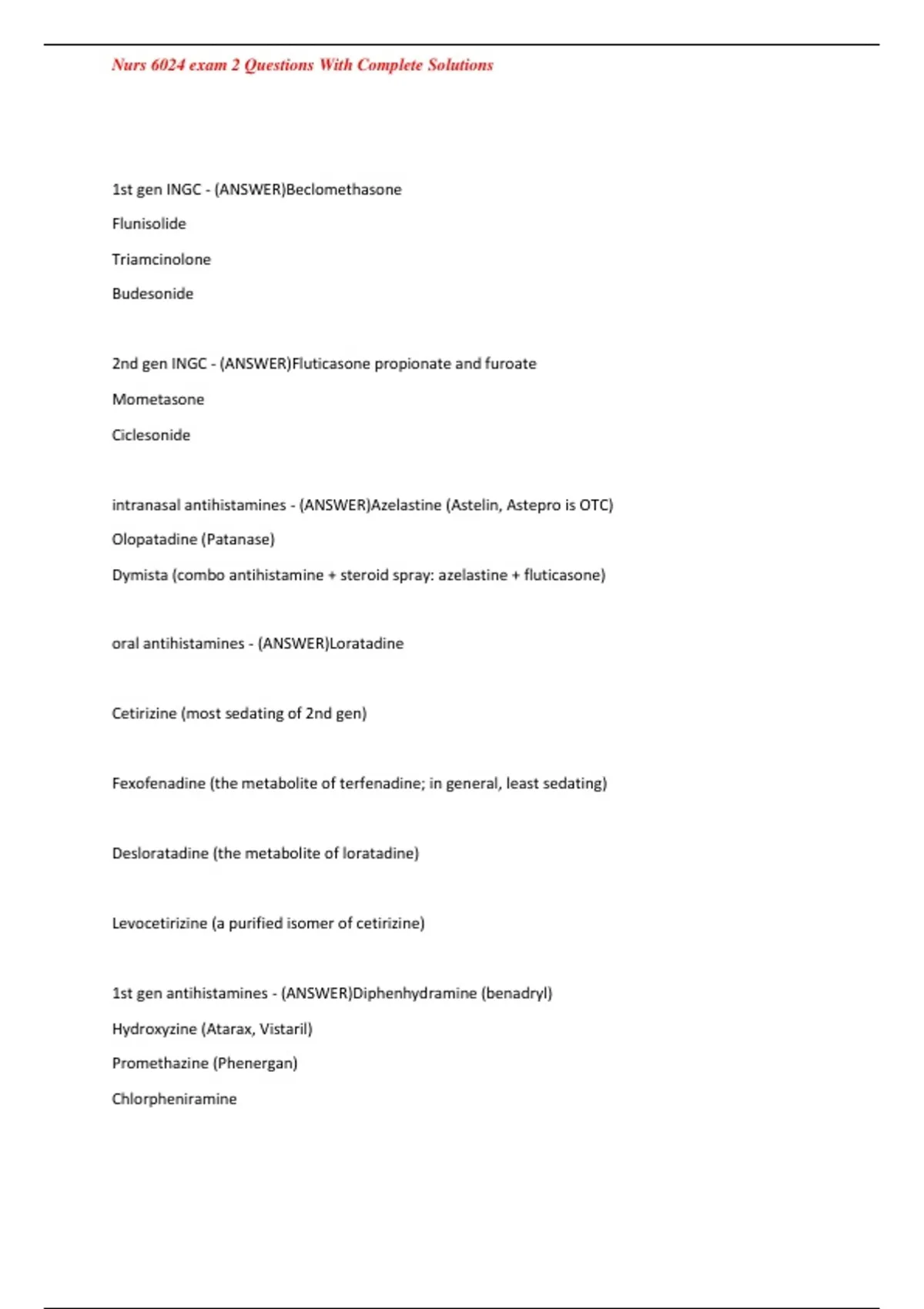 oral antihistamines - (ANSWER)Loratadine