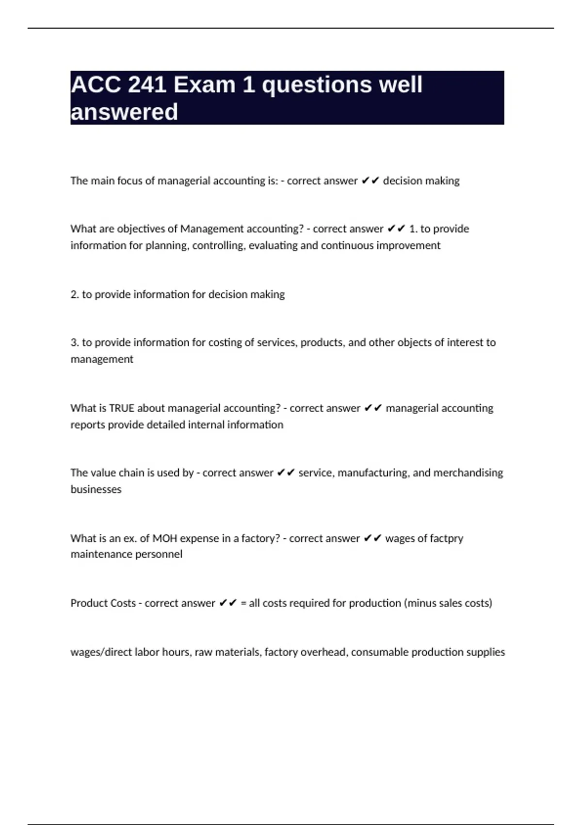 The main focus of managerial accounting is: - correct answer ✔✔ decision making
