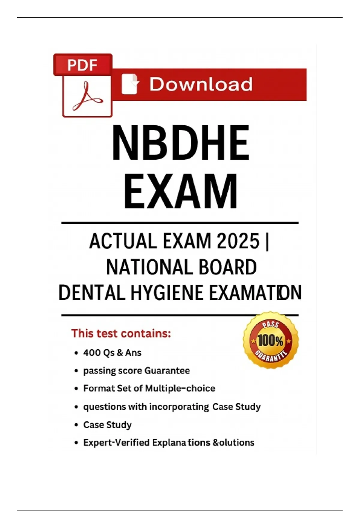 NBDHE Actual Exam Questions And Correct Answers With Rationale Graded A+ Latest Update