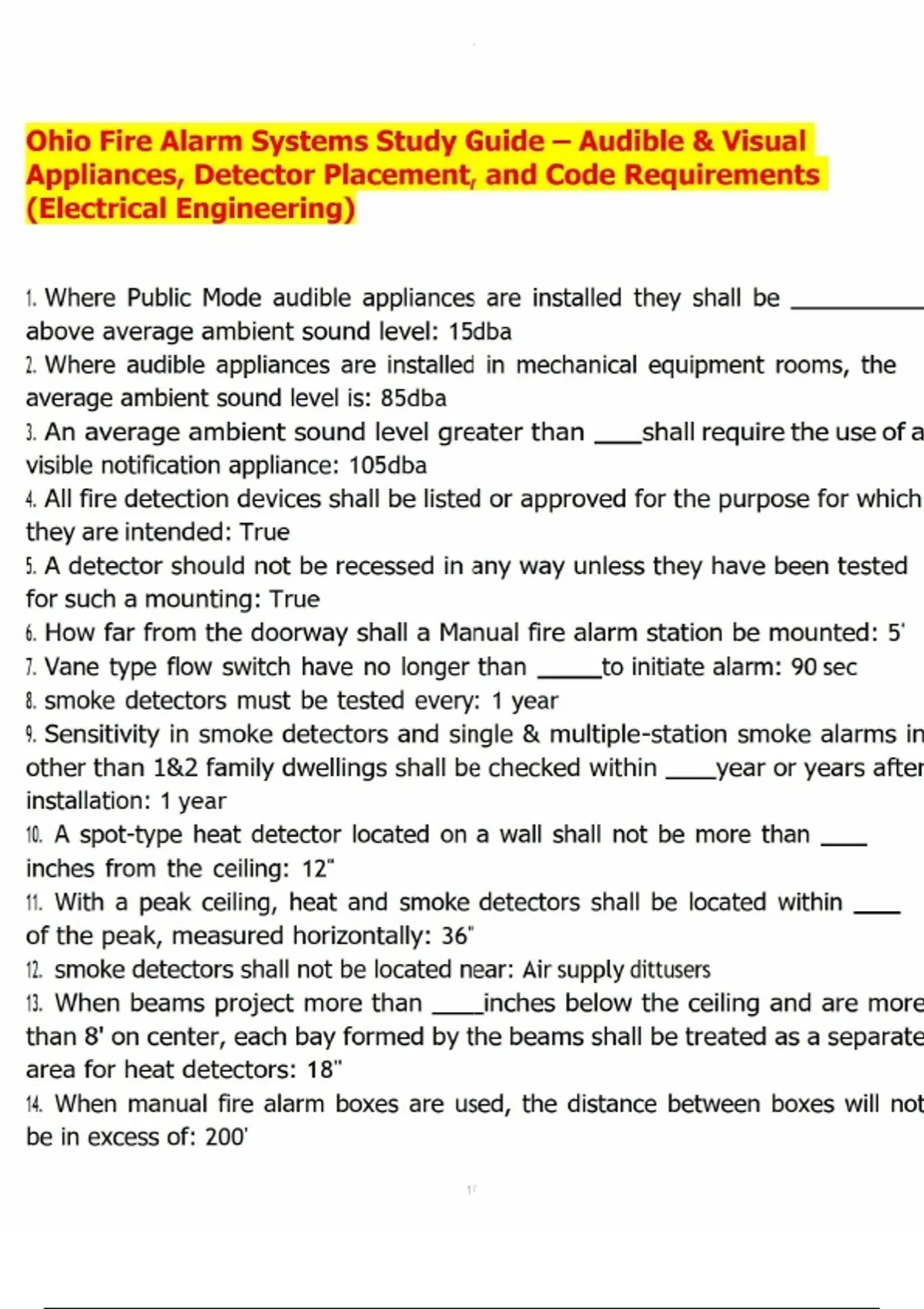 Ohio Fire Alarm Systems Study Guide – Audible & Visual Appliances, Detector Placement, and Code Requirements (Electrical Engineering).pdf