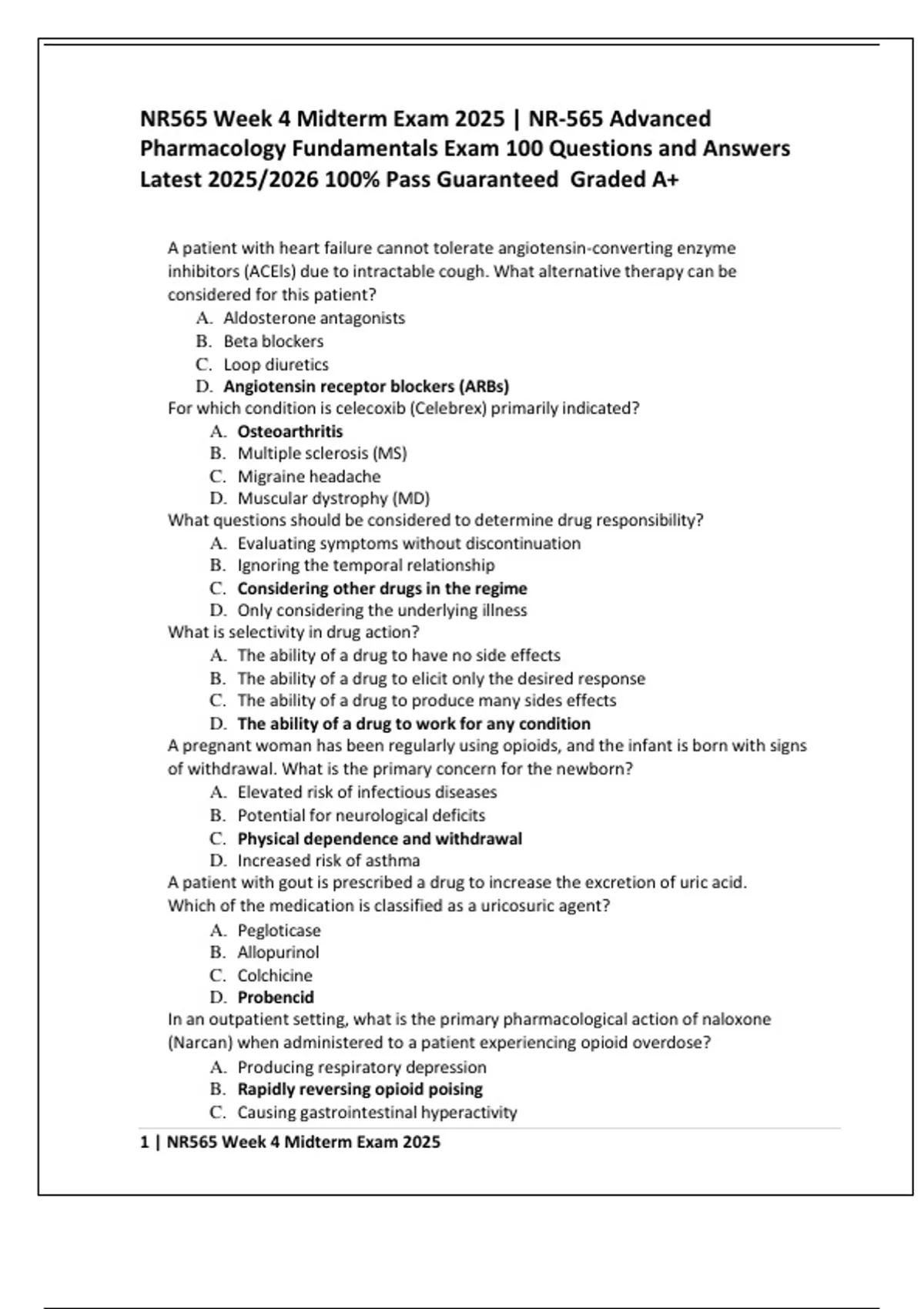 1 | NR565 Week 4 Midterm Exam 2025