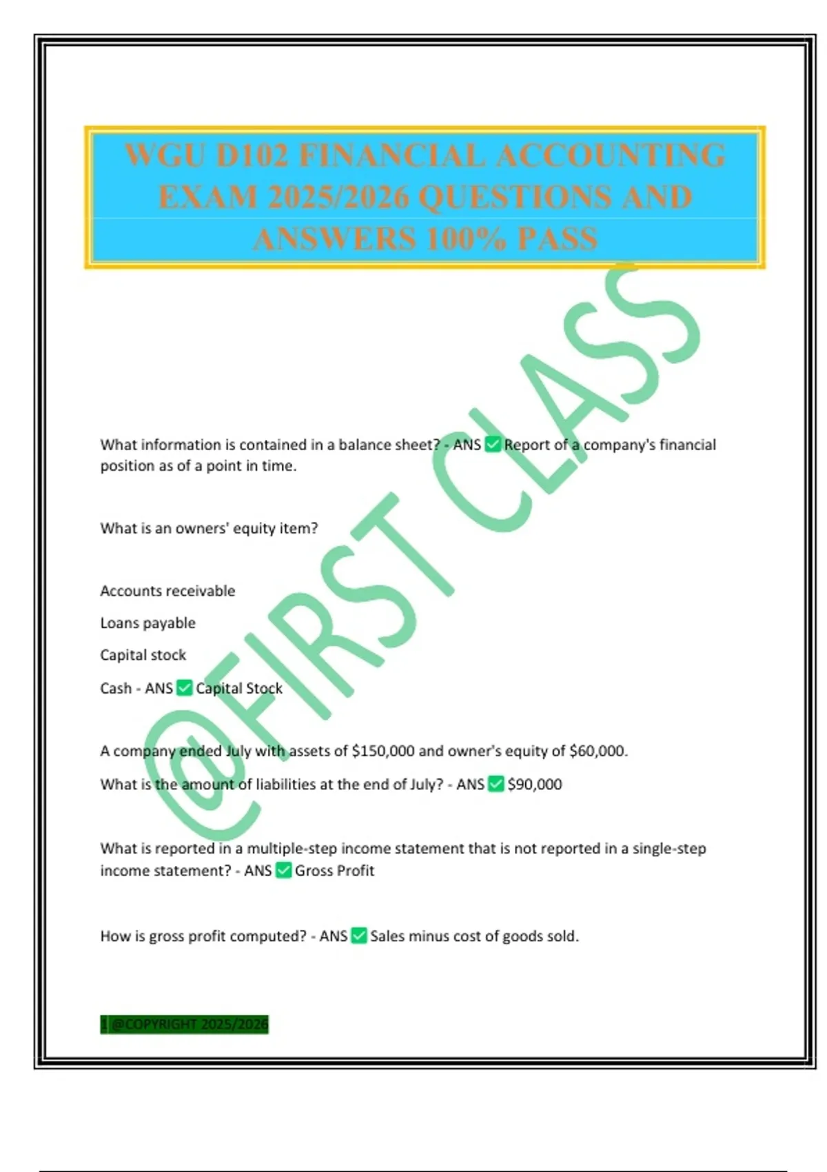 WGU D102 FINANCIAL ACCOUNTING