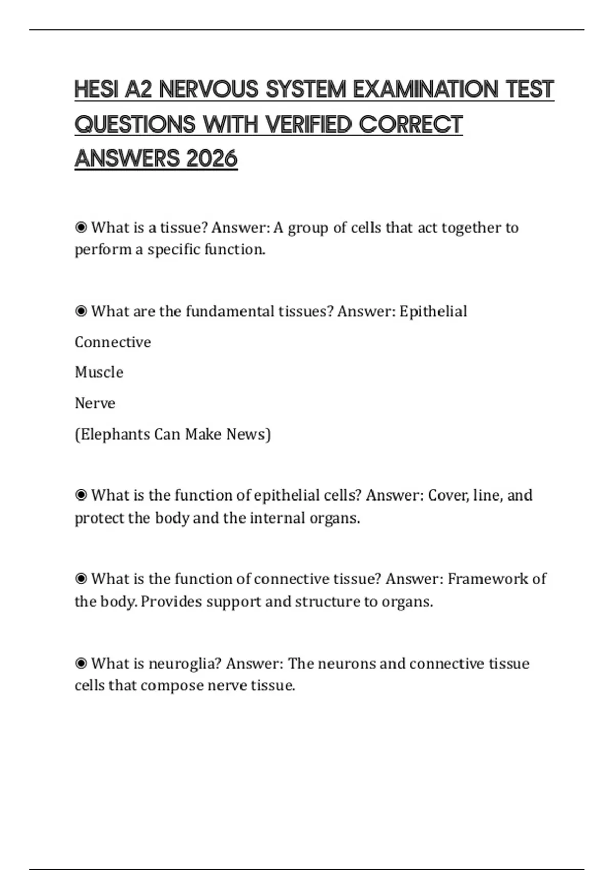 HESI A2 NERVOUS SYSTEM EXAMINATION TEST QUESTIONS WITH VERIFIED CORRECT ANSWERS 2026