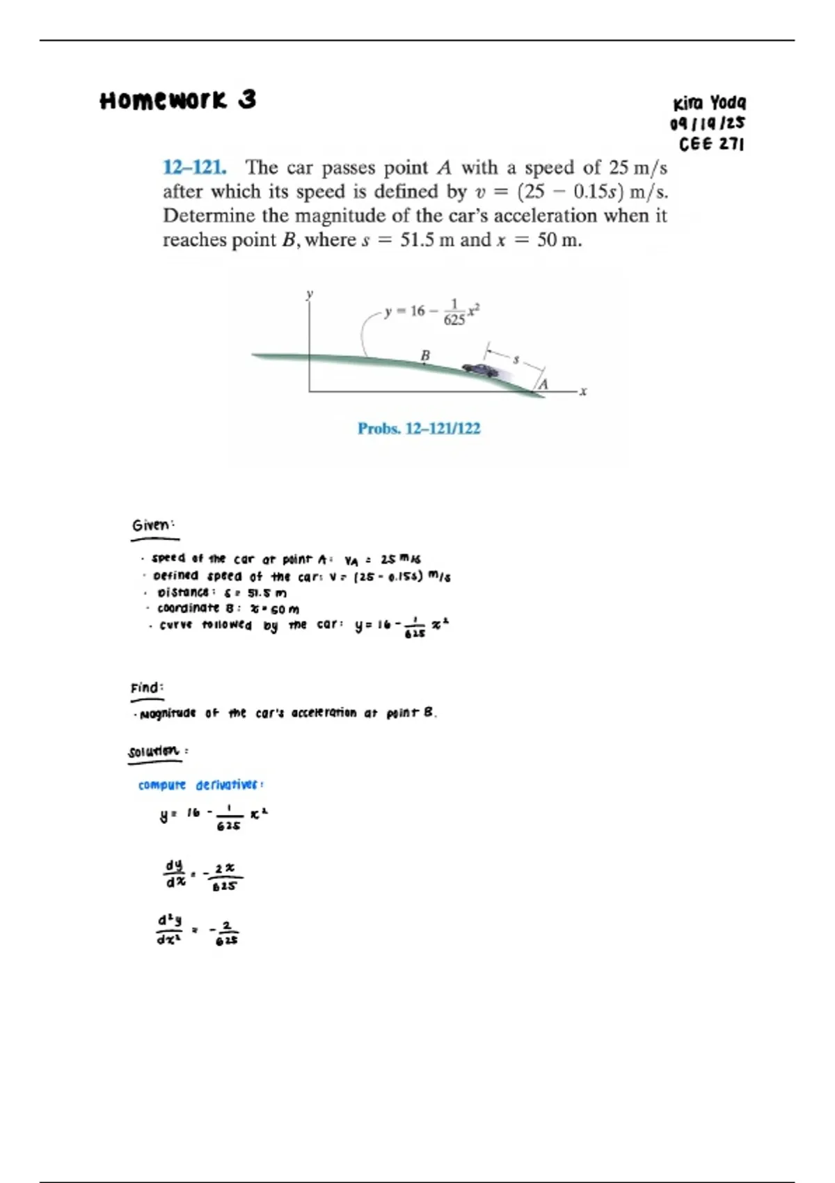 curve followed by the car y 16 615 2