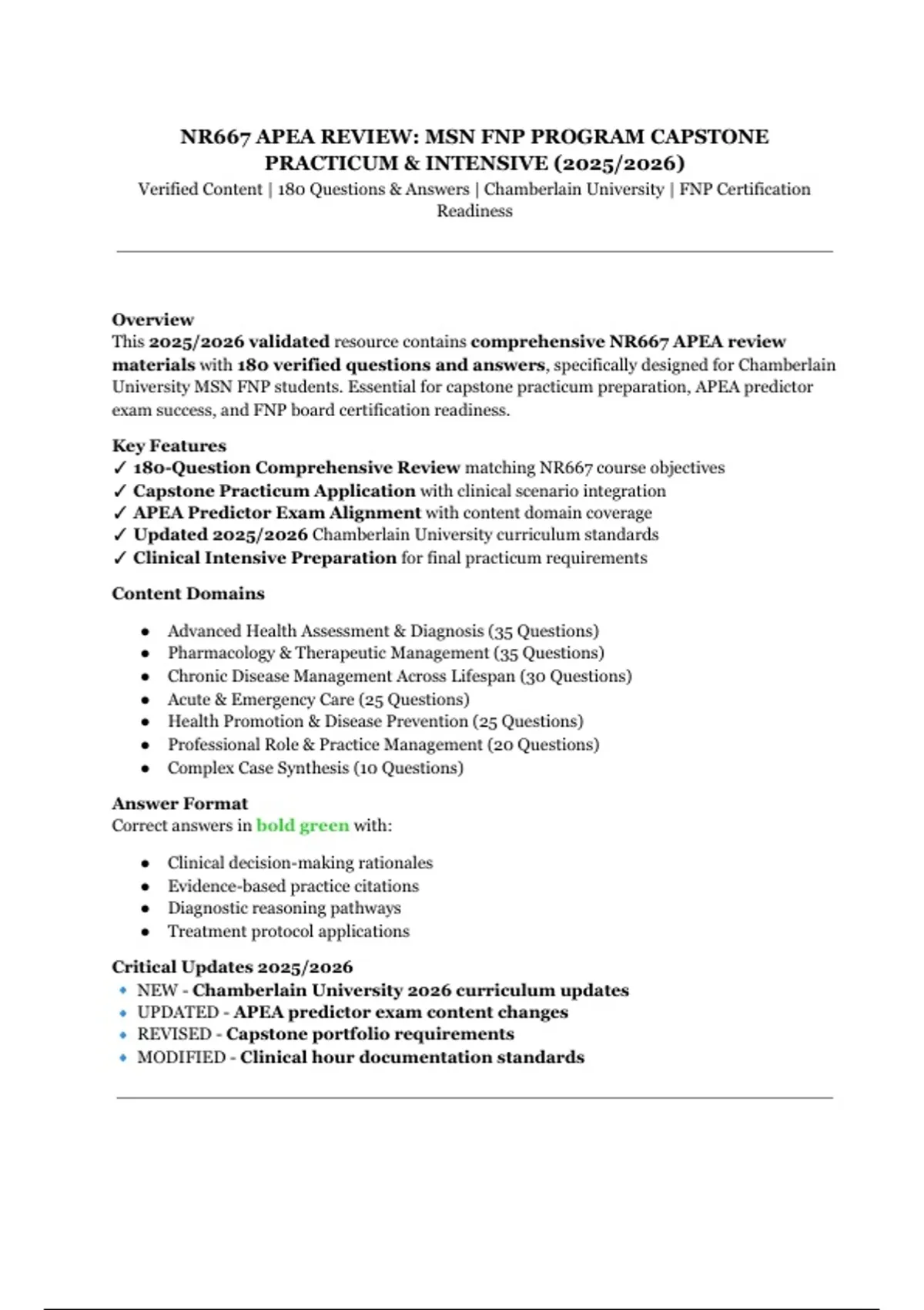 ✓ 180-Question Comprehensive Review matching NR667 course objectives
