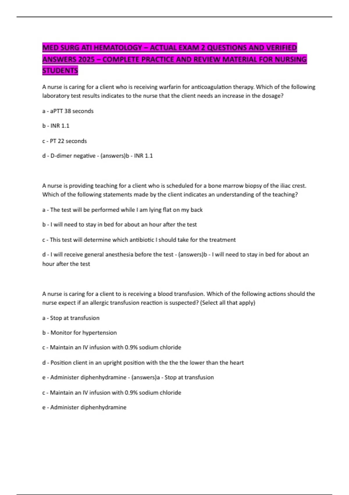 ANSWERS 2025 – COMPLETE PRACTICE AND REVIEW MATERIAL FOR NURSING