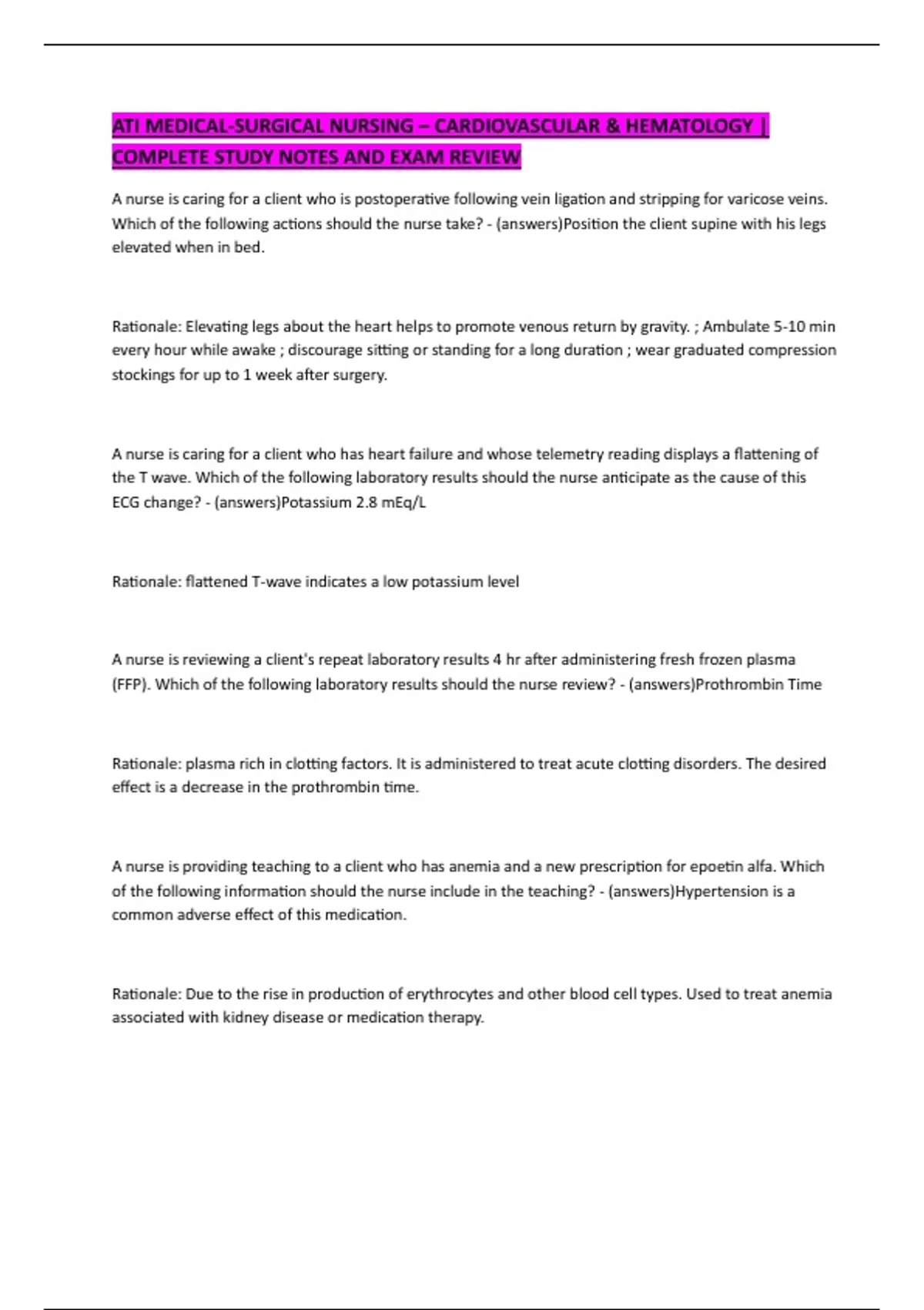 ATI MEDICAL-SURGICAL NURSING – CARDIOVASCULAR & HEMATOLOGY | COMPLETE STUDY NOTES AND EXAM REVIEW