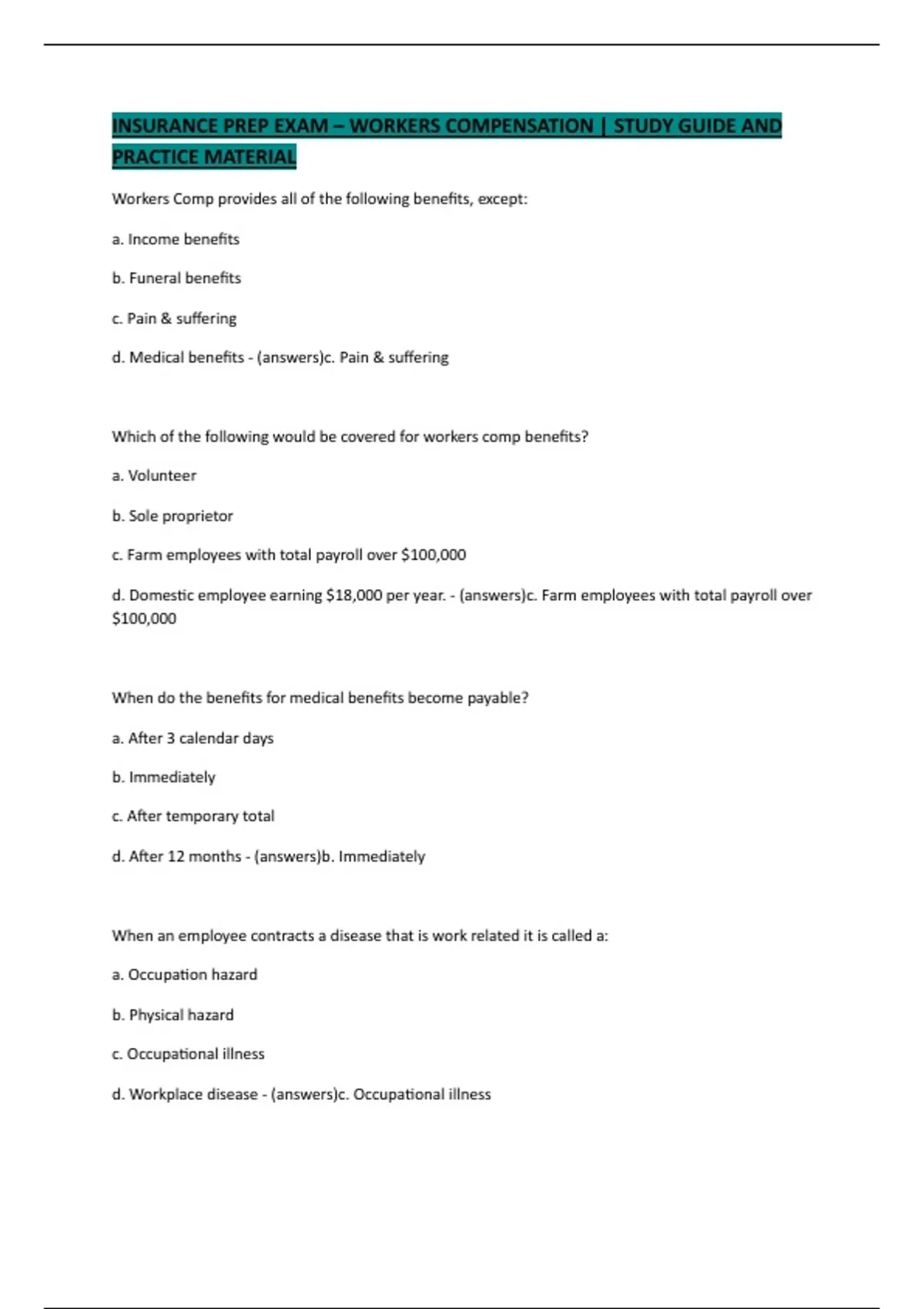 d. Medical benefits - (answers)c. Pain & suffering