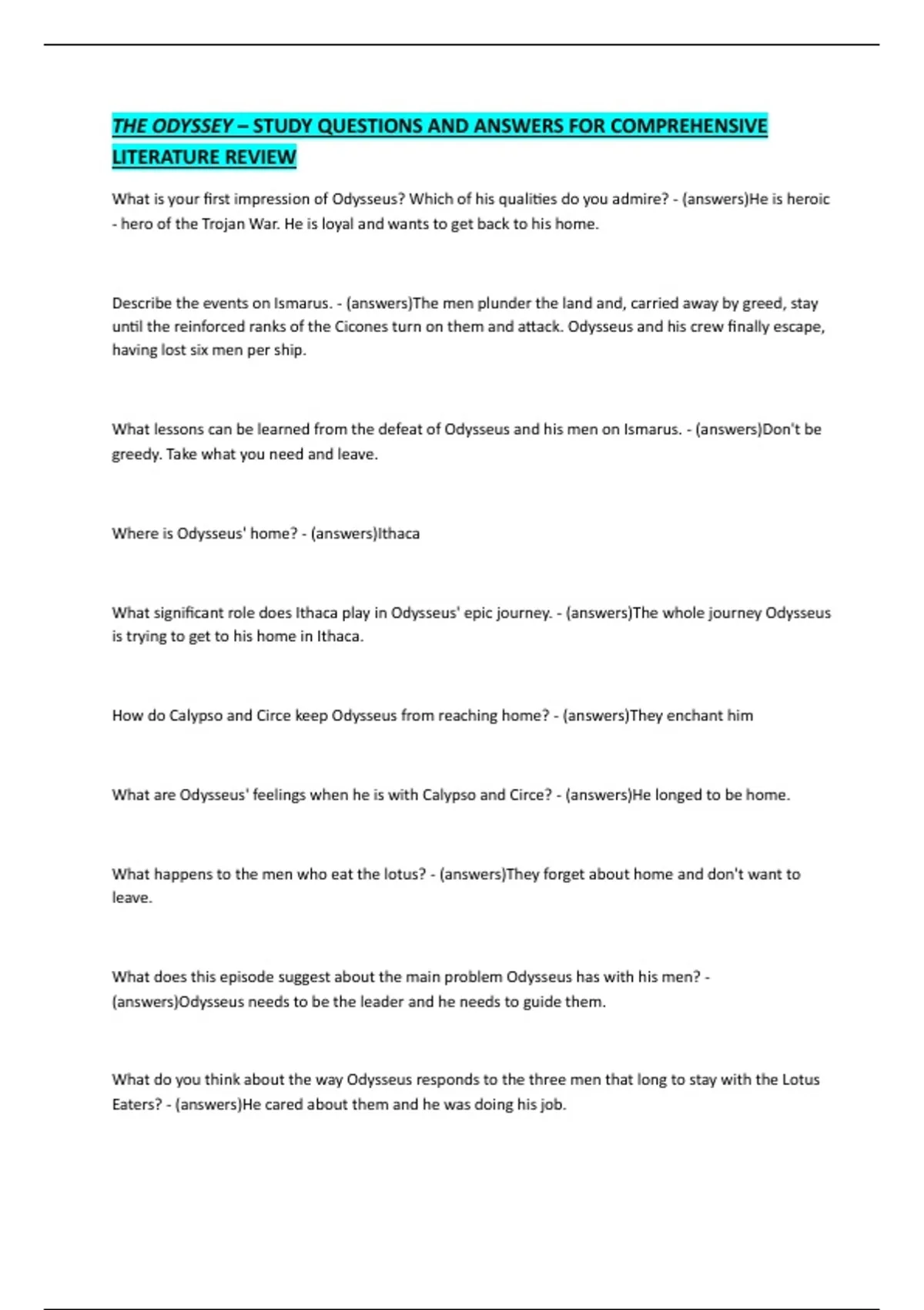 What is your first impression of Odysseus? Which of his qualities do you admire? - (answers)He is heroic