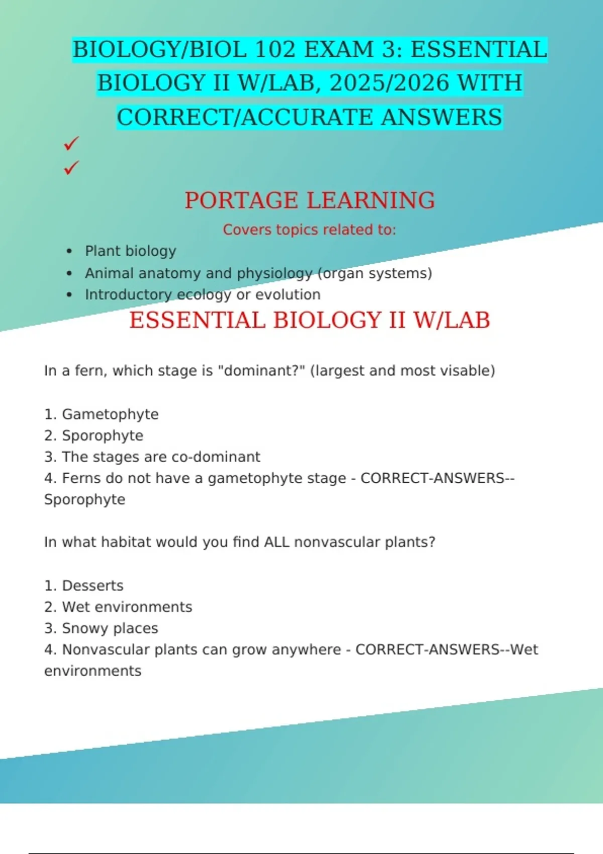 4. Ferns do not have a gametophyte stage - CORRECT-ANSWERS--
