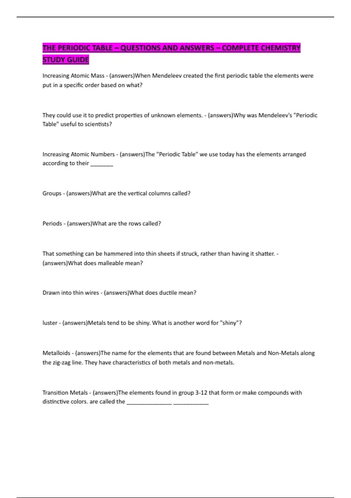 Increasing Atomic Mass - (answers)When Mendeleev created the first periodic table the elements were