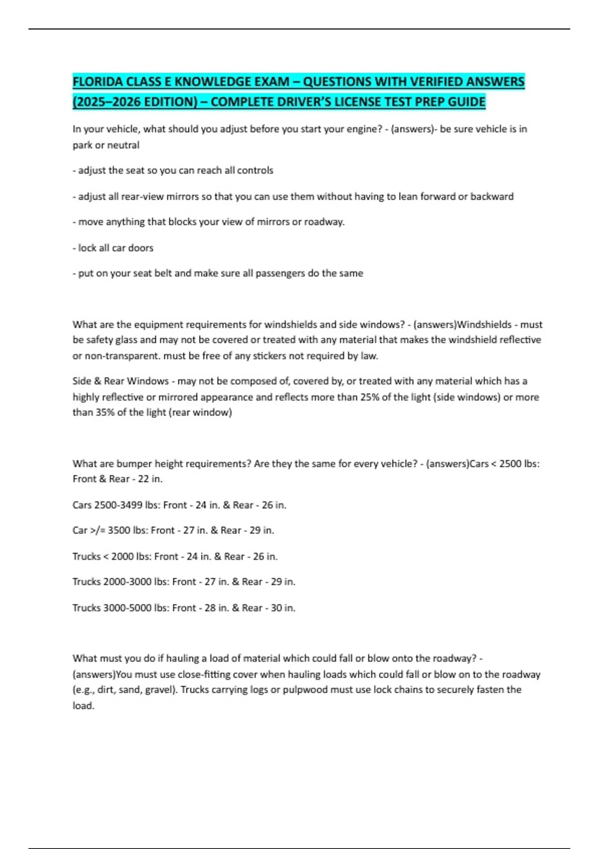 (answers)You must use close-fitting cover when hauling loads which could fall or blow on to the roadway