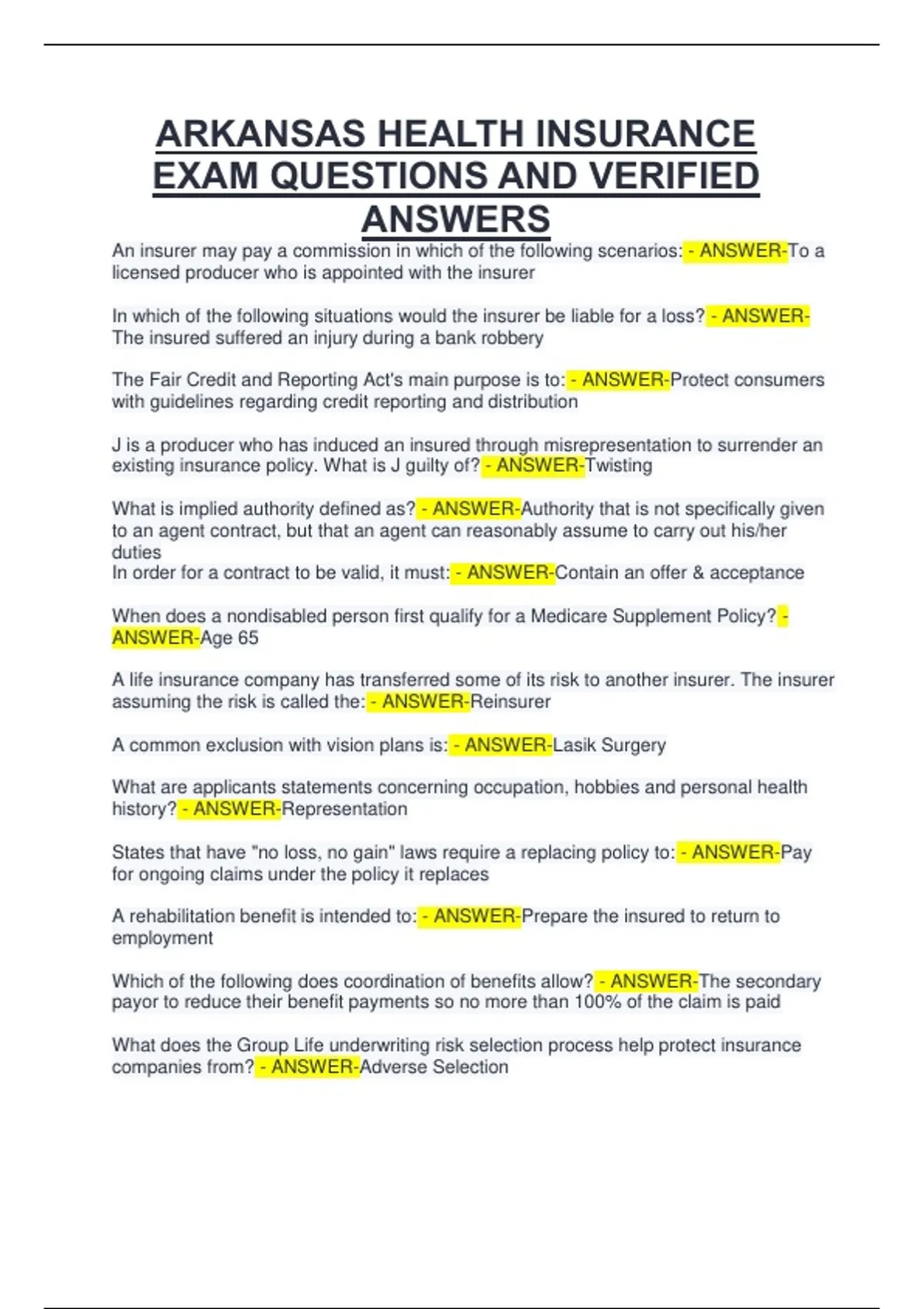 companies from? - ANSWER-Adverse Selection
