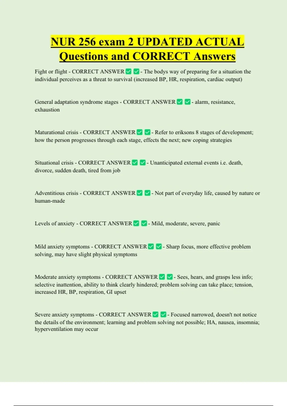NUR 256 exam 2 UPDATED ACTUAL Questions and CORRECT Answers