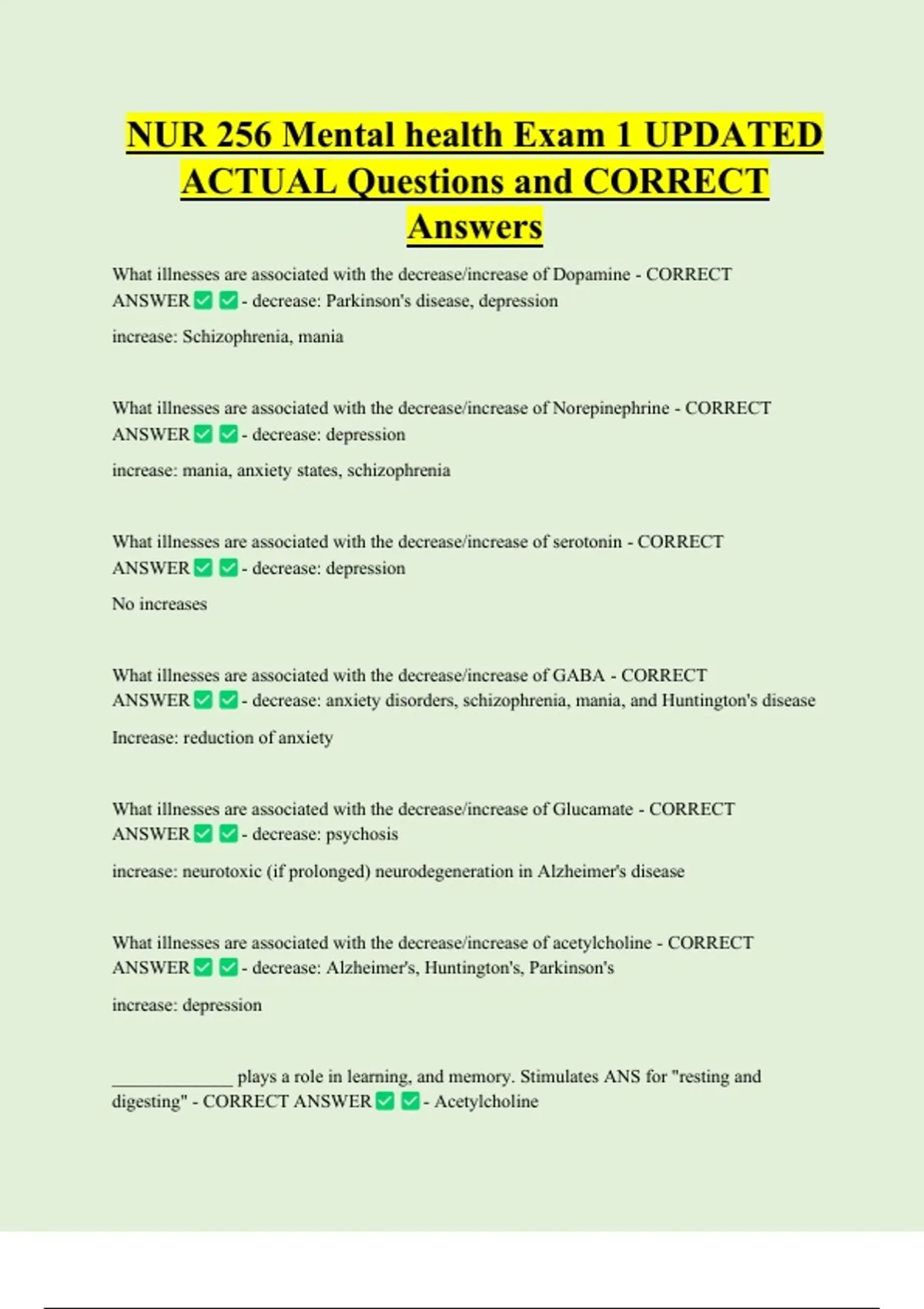 NUR 256 Mental health Exam 1 UPDATED ACTUAL Questions and CORRECT Answers