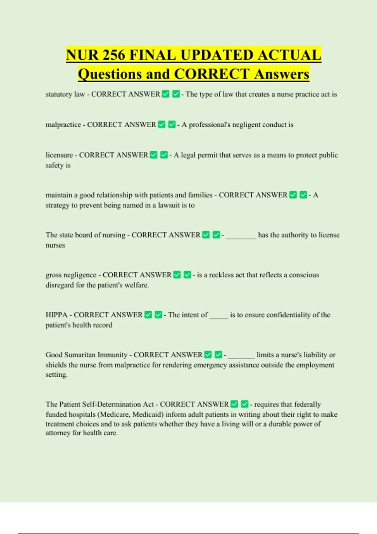 Questions and CORRECT Answers