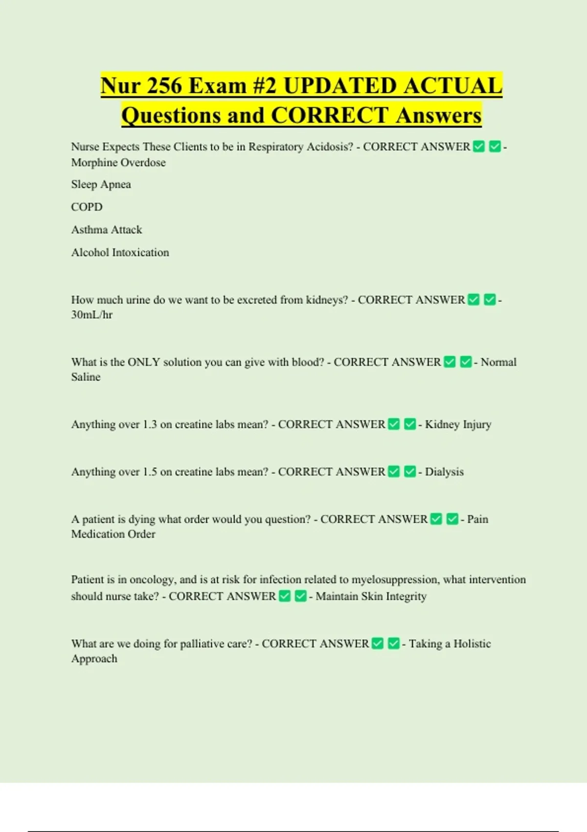 Nur 256 Exam #2 UPDATED ACTUAL Questions and CORRECT Answers