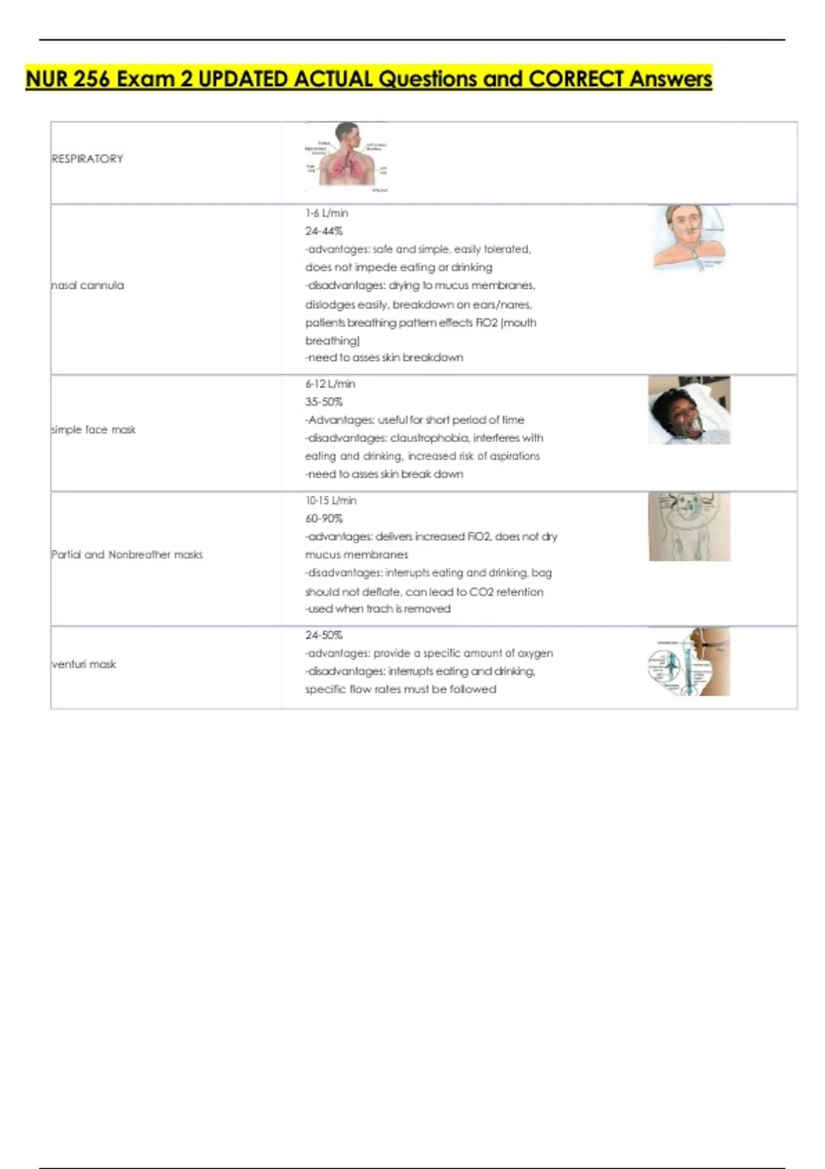 -disadvantages: FiO2 dependent on patient