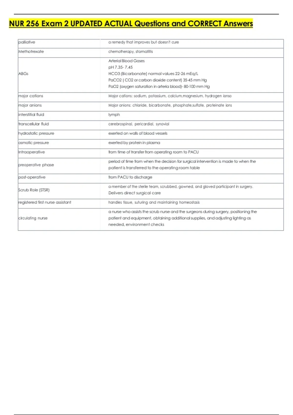 NUR 256 Exam 2 UPDATED ACTUAL Questions and CORRECT Answers