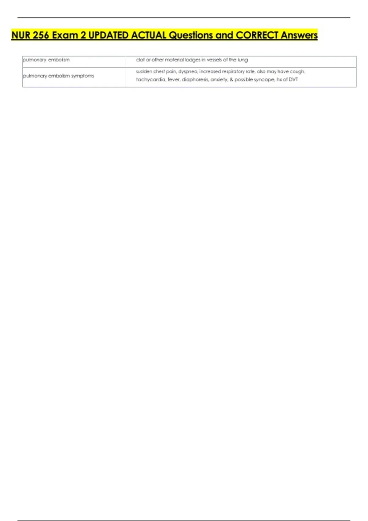 NUR 256 Exam 2 UPDATED ACTUAL Questions and CORRECT Answers