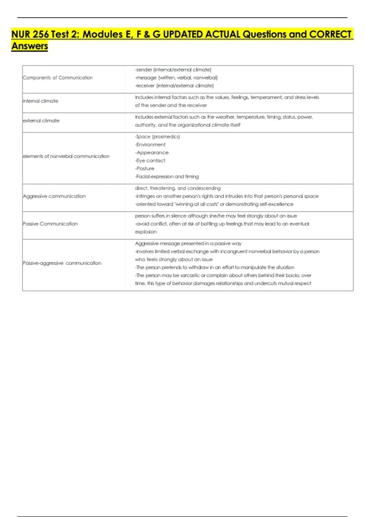 NUR 256 Test 2: Modules E, F & G UPDATED ACTUAL Questions and CORRECT