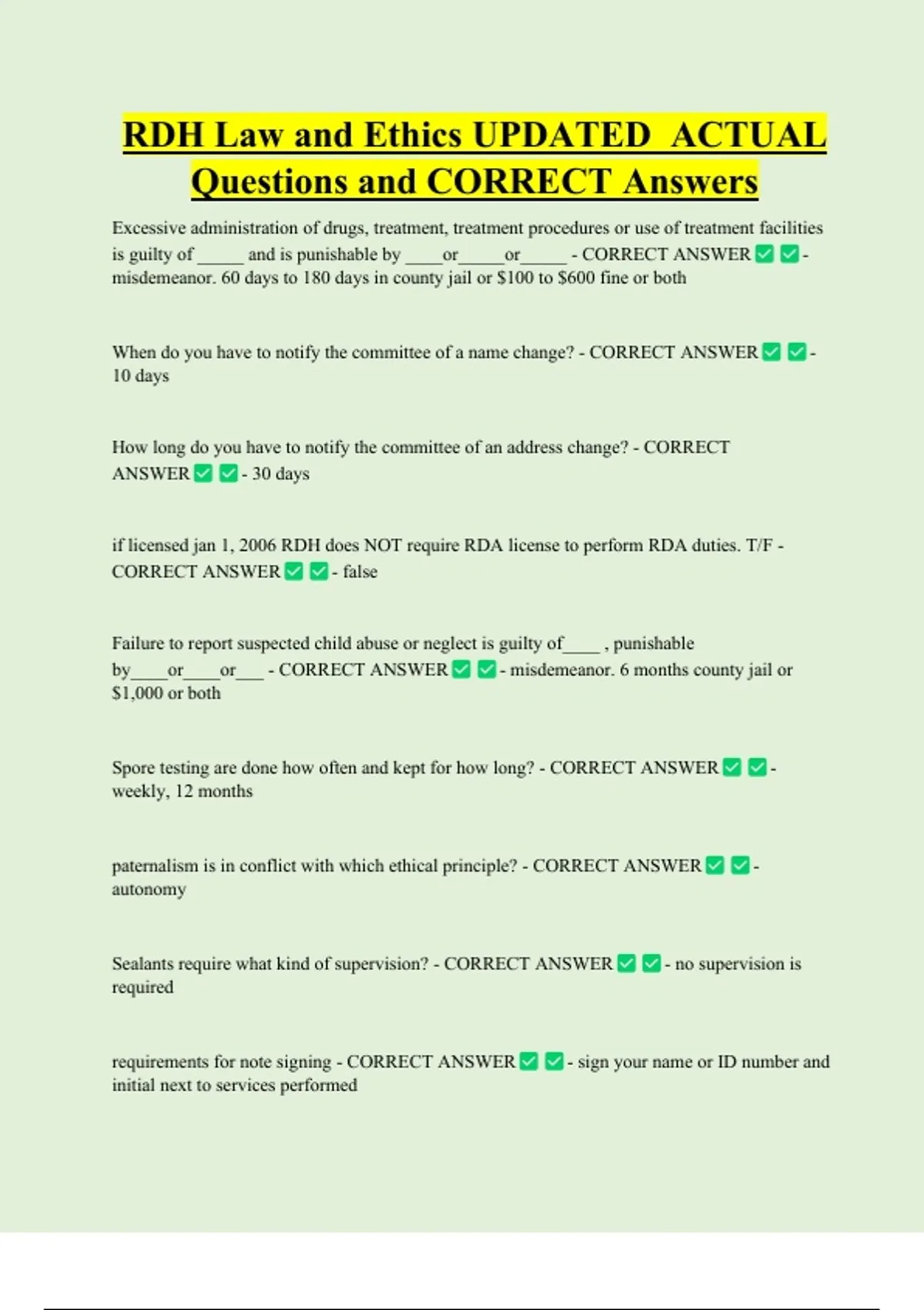 Questions and CORRECT Answers