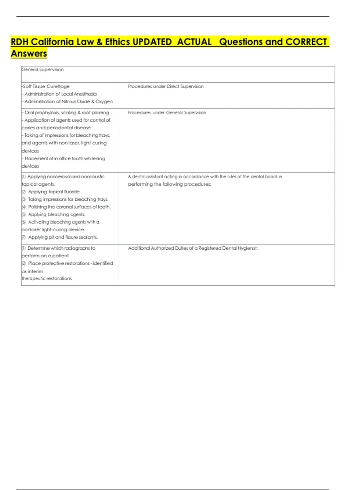 - Oral prophylaxis, scaling & root plaining Procedures under General Supervision