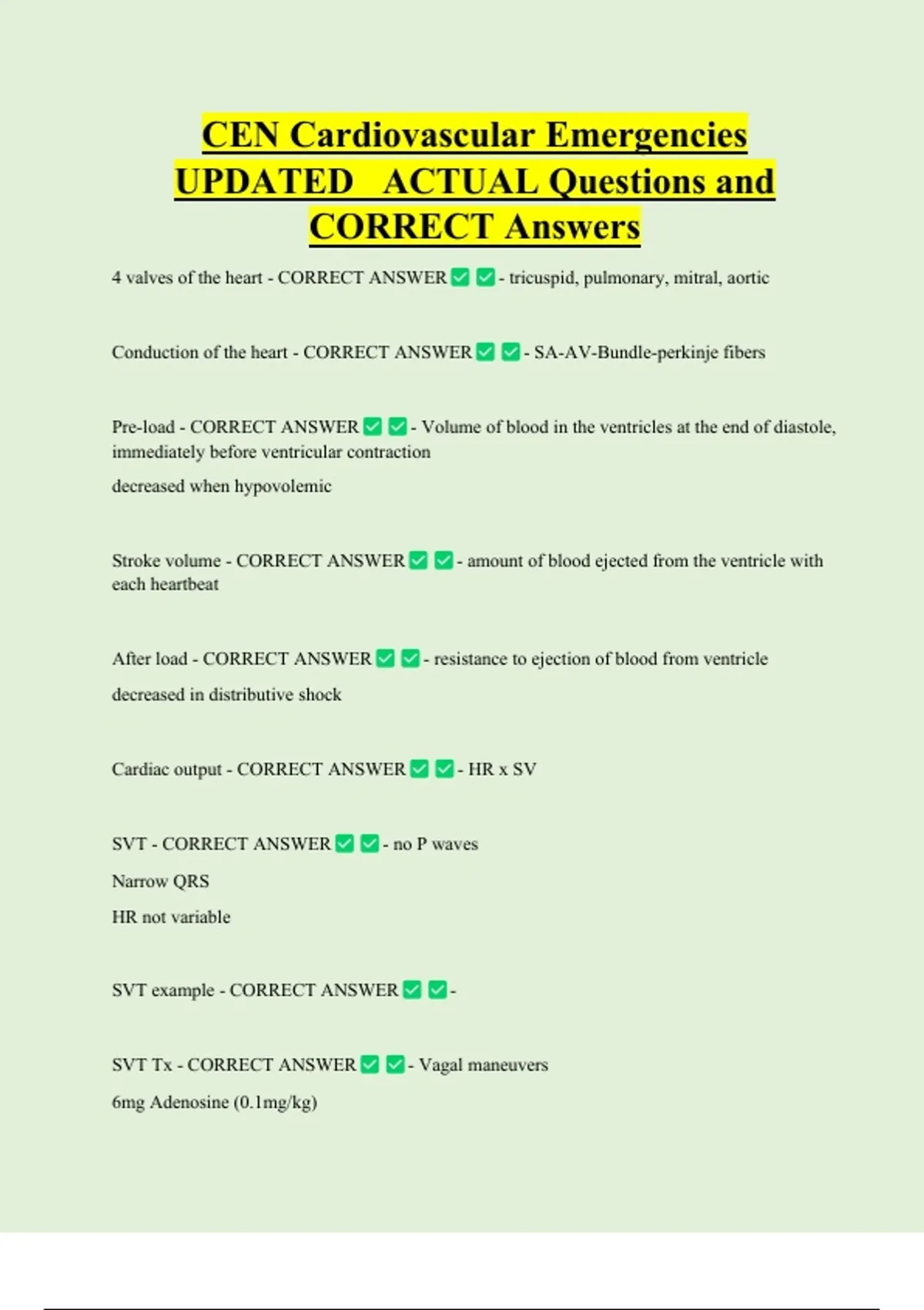 CEN Cardiovascular Emergencies UPDATED ACTUAL Questions and CORRECT Answers