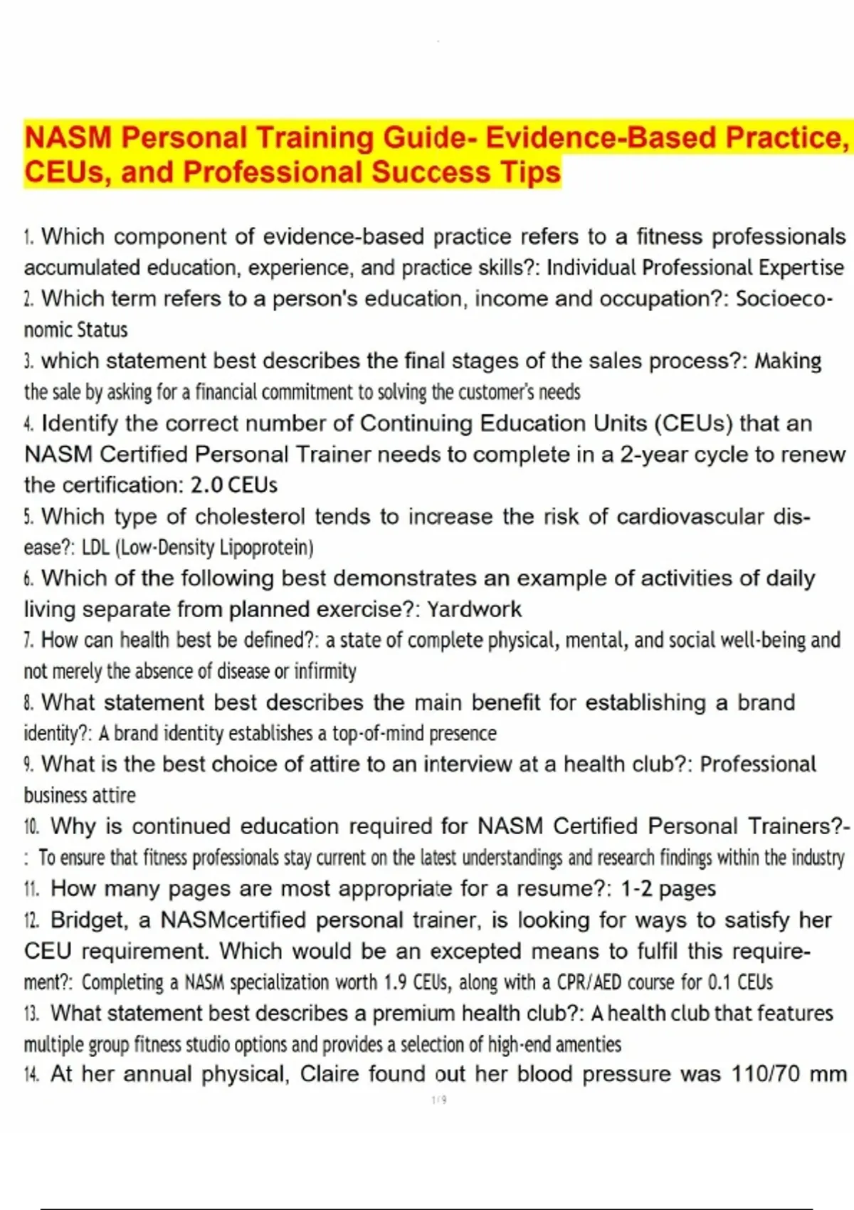 NASM Personal Training Guide- Evidence-Based Practice, CEUs, and Professional Success T NASM Personal Training Guide- Evidence-Based Practice, CEUs, and Professional Success T NASM Personal Training Guide- Evidence-Based Practice, CEUs, and Professional Success T