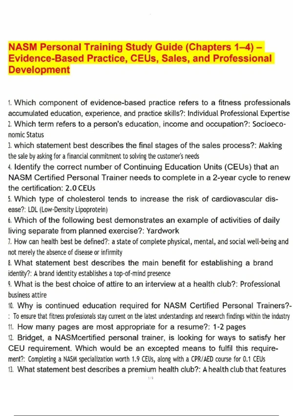 NASM Personal Training Study Guide (Chapters 1–4) – Evidence-Based Practice, CEUs, Sales, and Professional D NASM Personal Training Study Guide (Chapters 1–4) – Evidence-Based Practice, CEUs, Sales, and Professional D NASM Personal Training Study Guide (Chapters 1–4) – Evidence-Based Practice, CEUs, Sales, and Professional D