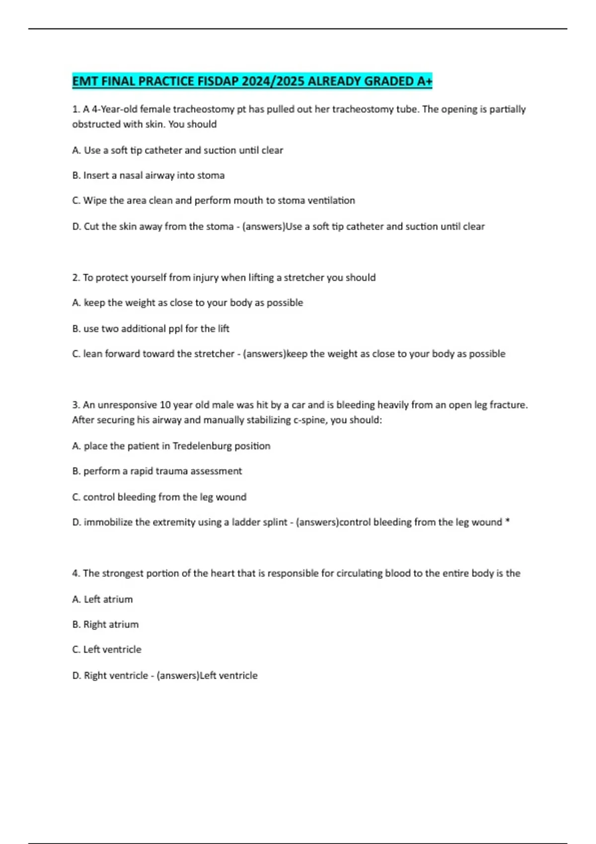 D. immobilize the extremity using a ladder splint - (answers)control bleeding from the leg wound *