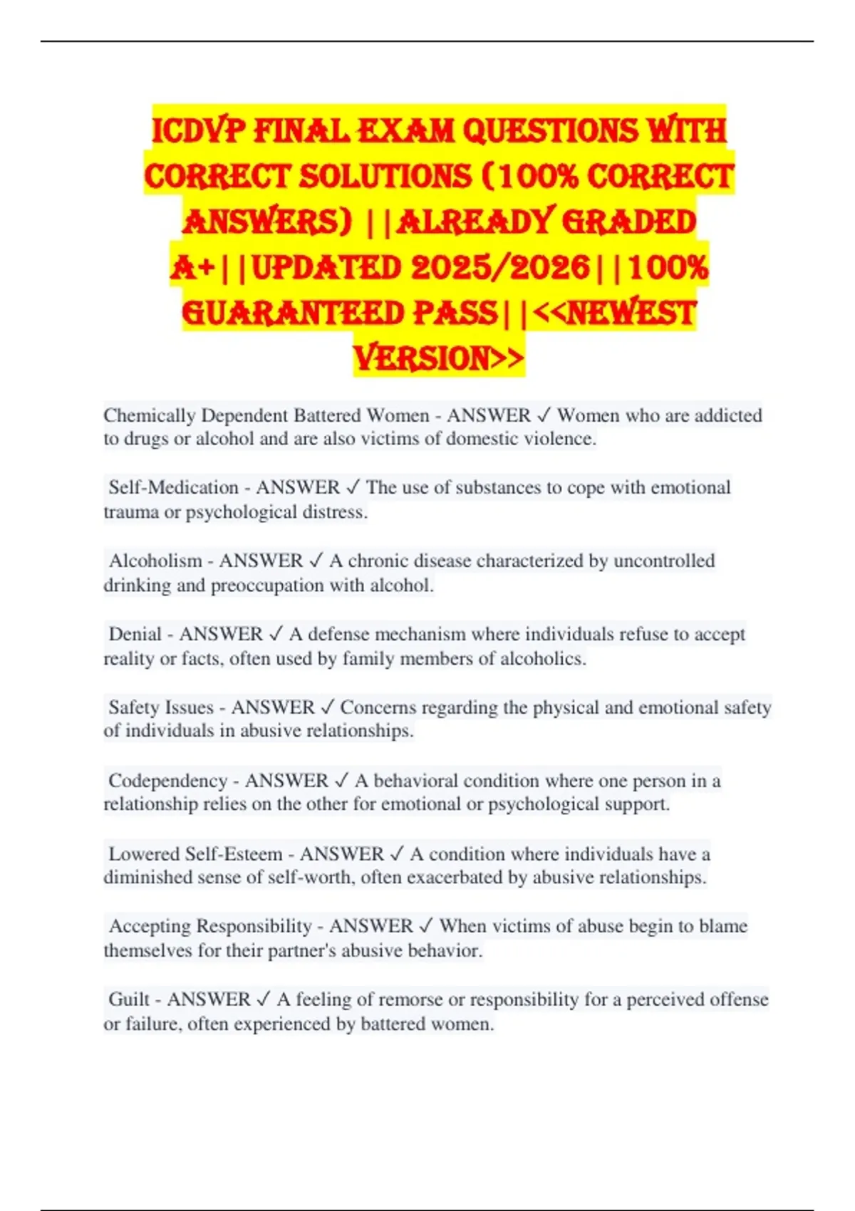 Chemically Dependent Battered Women - ANSWER ✓ Women who are addicted
