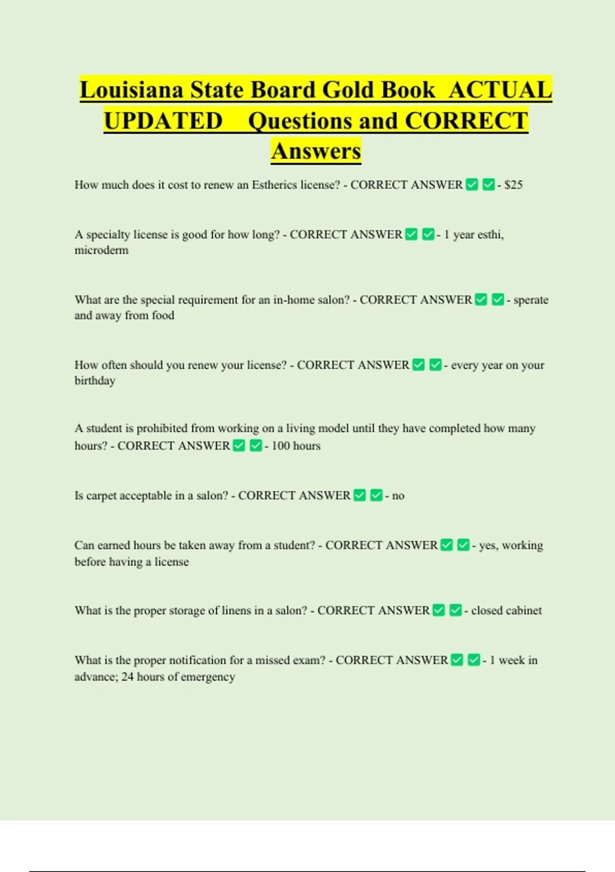 Louisiana State Board Gold Book ACTUAL UPDATED Questions and CORRECT Answers
