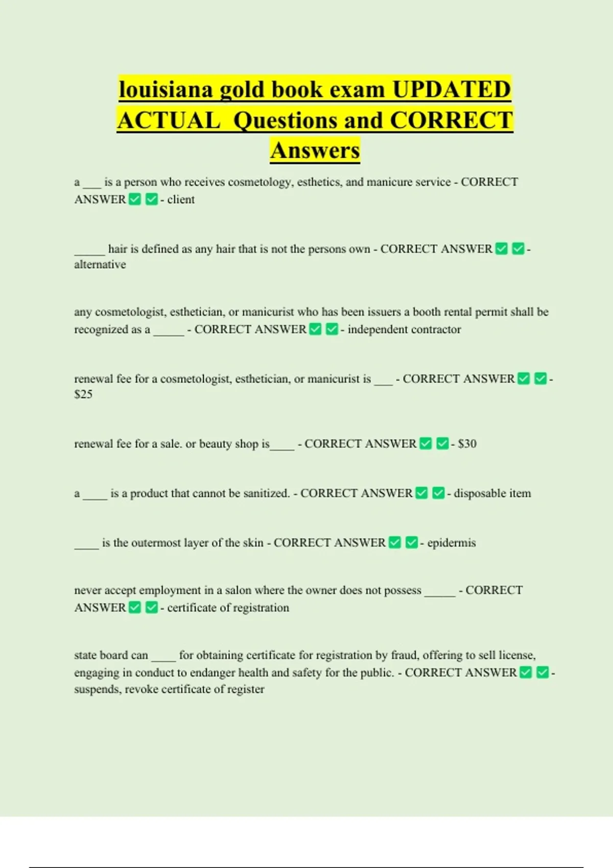louisiana gold book exam UPDATED ACTUAL Questions and CORRECT Answers