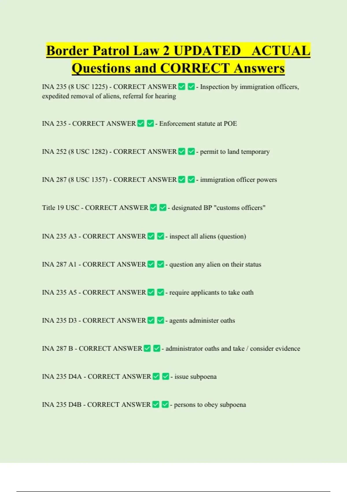 Border Patrol Law 2 UPDATED ACTUAL