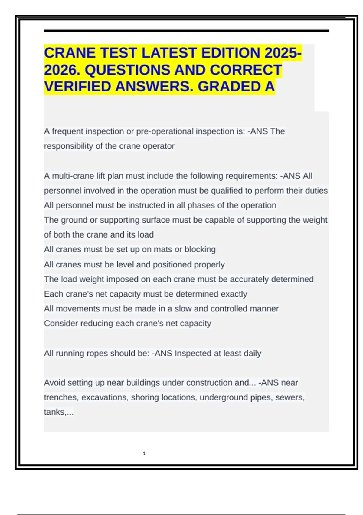 A multi-crane lift plan must include the following requirements: -ANS All