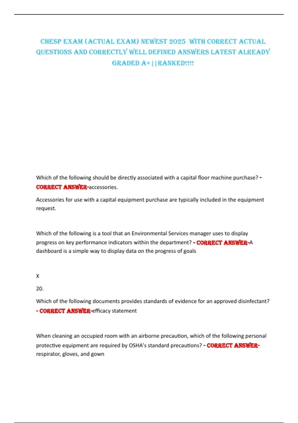 Chesp exam (aCtual exam) Newest 2025 with CorreCt aCtual
