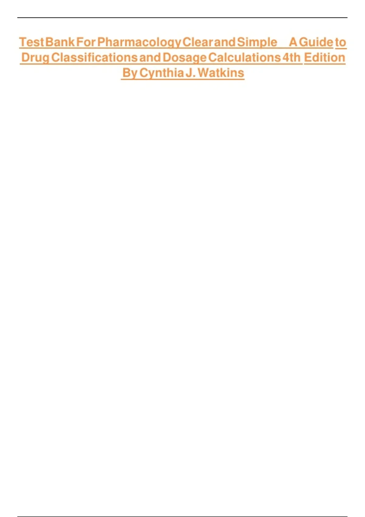 Pharmacology Clear and Simple, 5th Edition (Watkins, 2025) – Complete Test Bank with Answers ISBN- Pharmacology Clear and Simple, 5th Edition (Watkins, 2025) – Complete Test Bank with Answers ISBN- Pharmacology Clear and Simple, 5th Edition (Watkins, 2025) – Complete Test Bank with Answers ISBN-