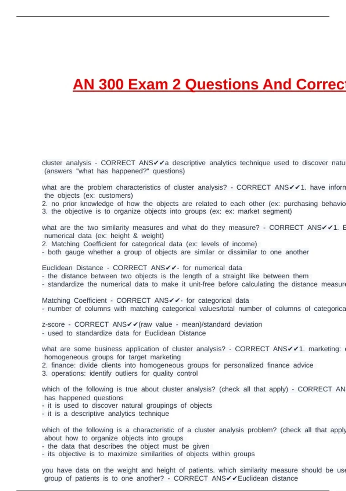 cluster canalysis c- cCORRECT cANS✔✔a cdescriptive canalytics ctechnique cused cto cdiscover cnatur