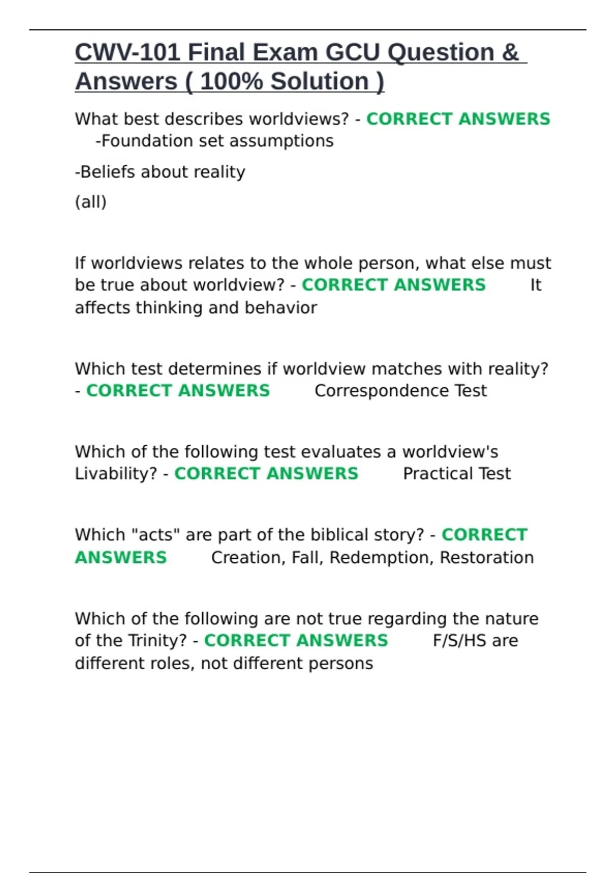 CWV-101 Final Exam GCU Question & Answers ( 100- Solution ).docx