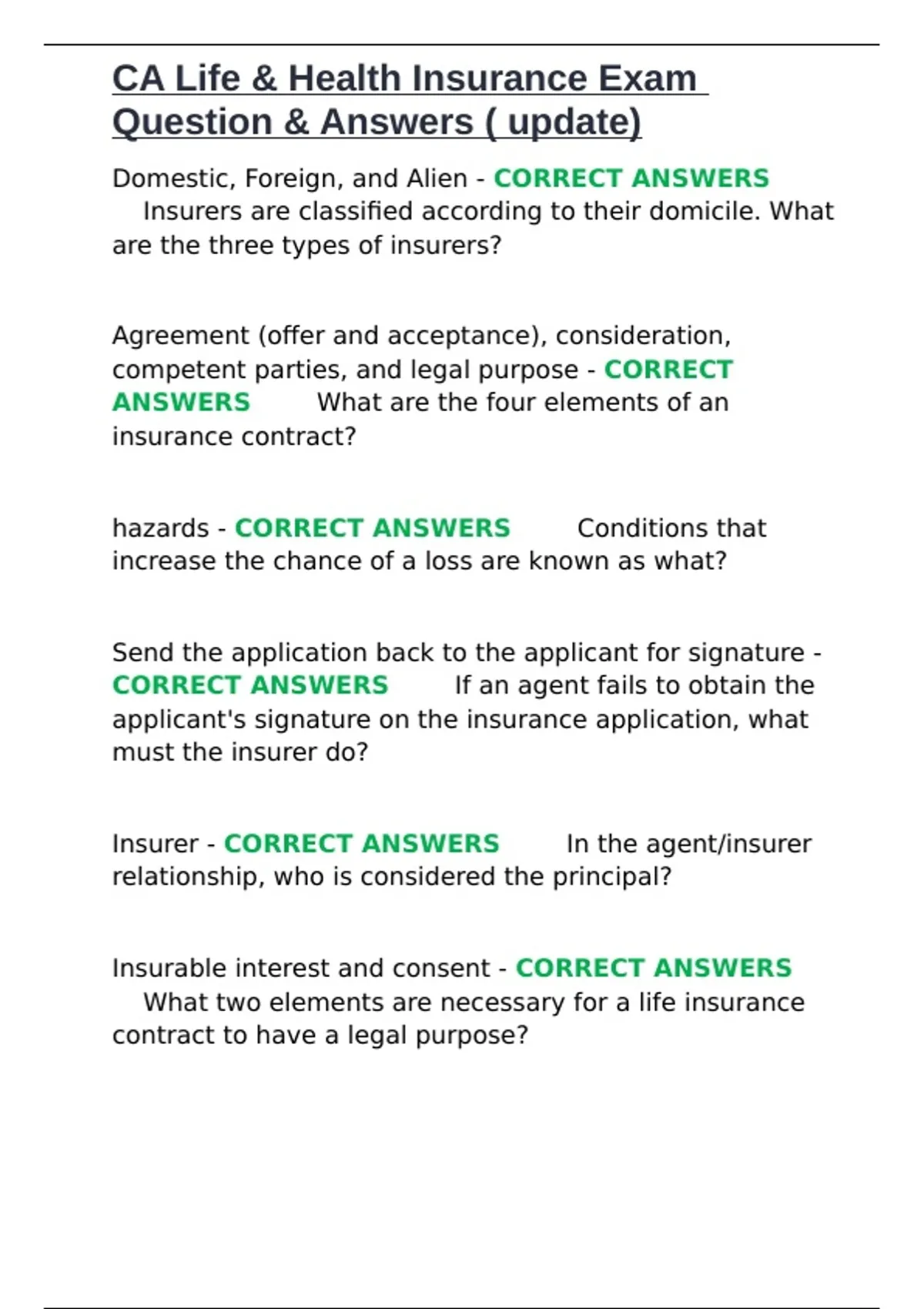 CA Life & Health Insurance Exam Question & Answers ( update).docx