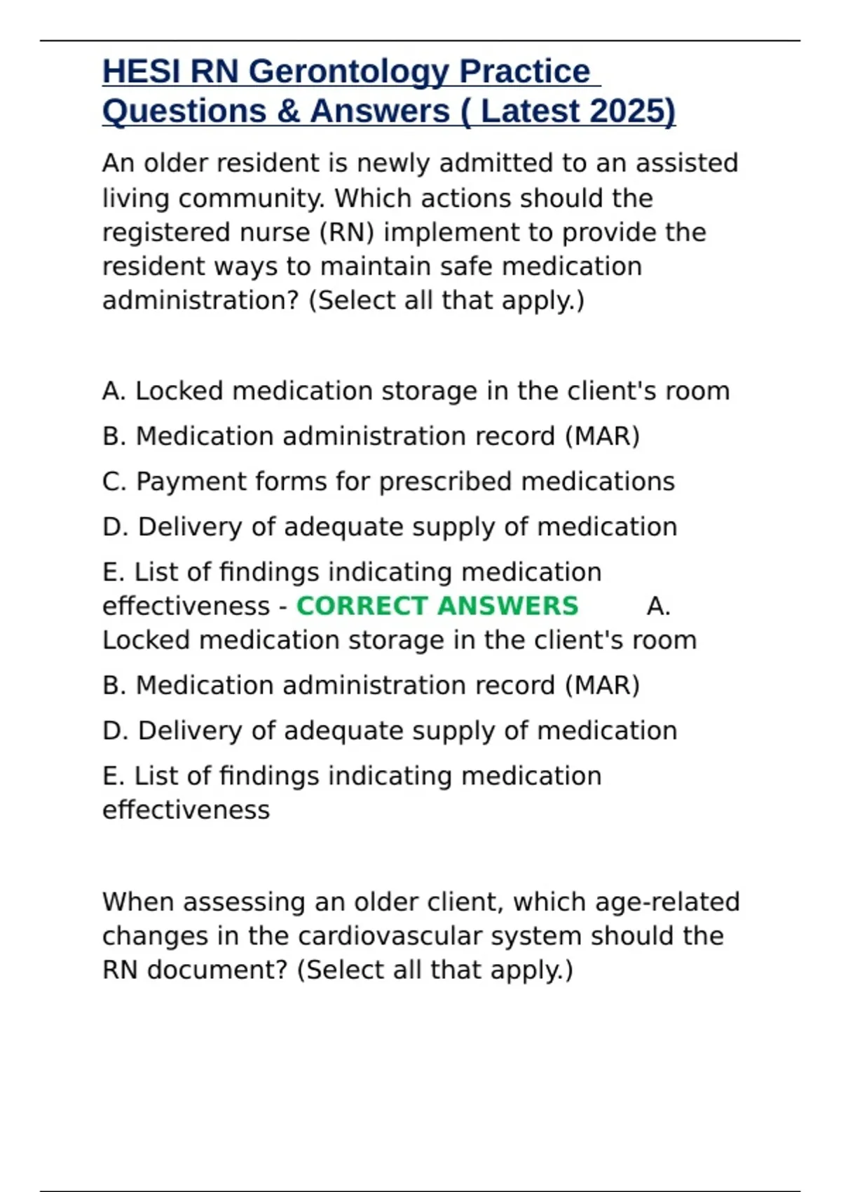 ,HESI RN Gerontology Practice