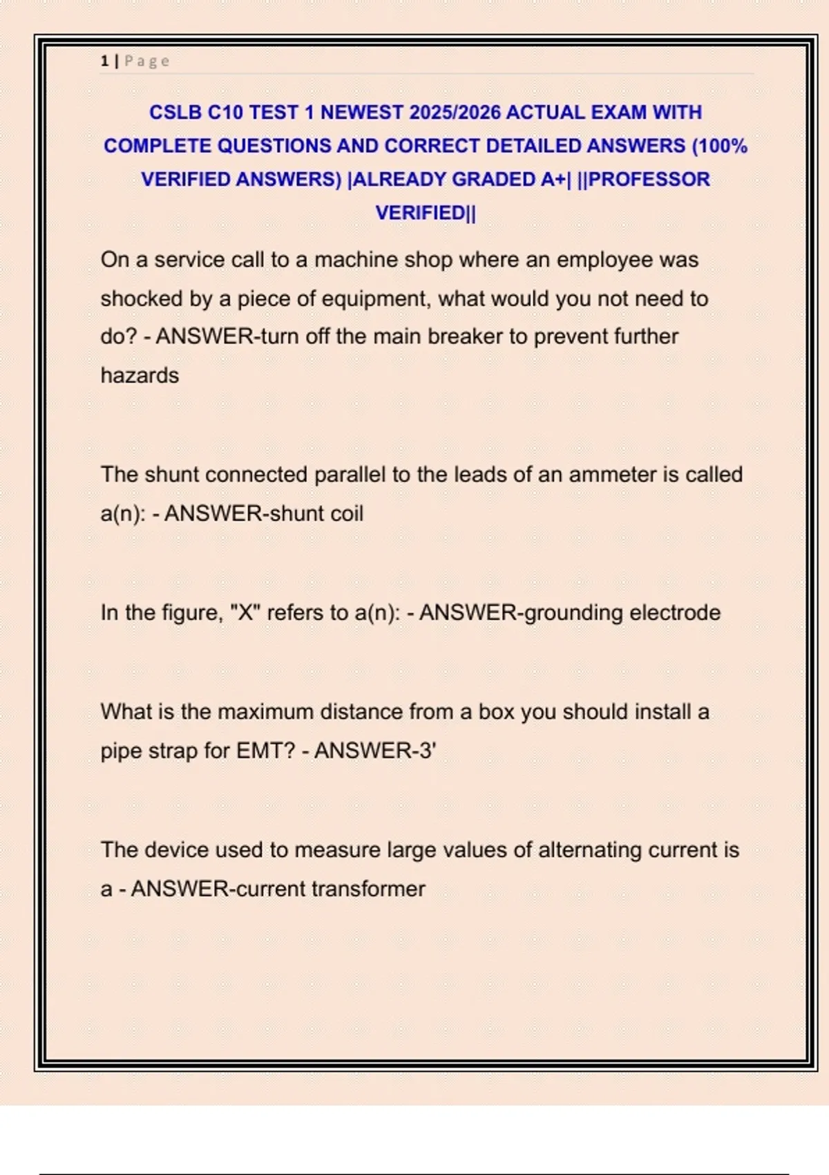 CSLB C10 TEST 1 NEWEST 2025/2026 ACTUAL EXAM WITH