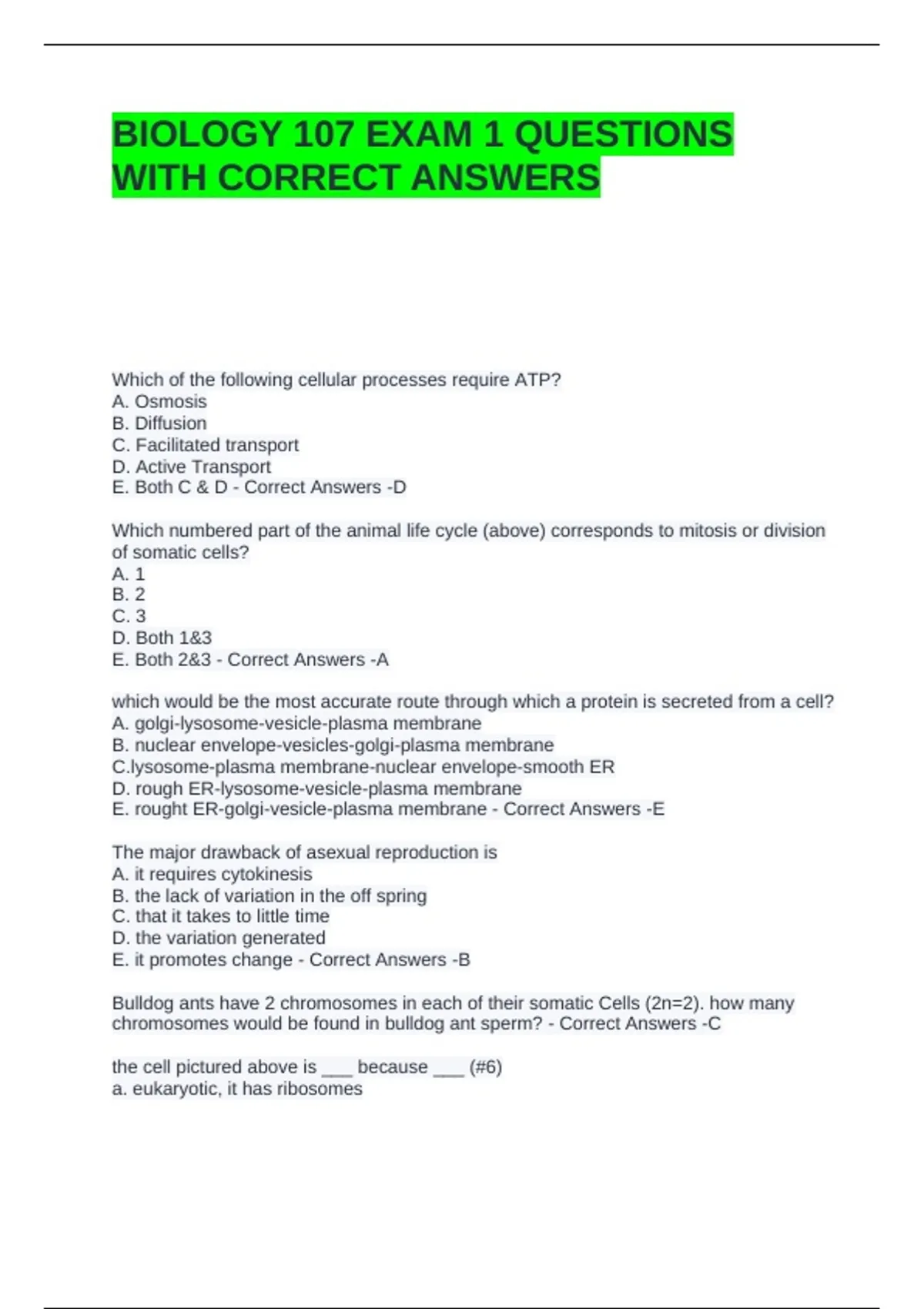 BIOLOGY 107 EXAM 1 QUESTIONS WITH CORRECT ANSWERS
