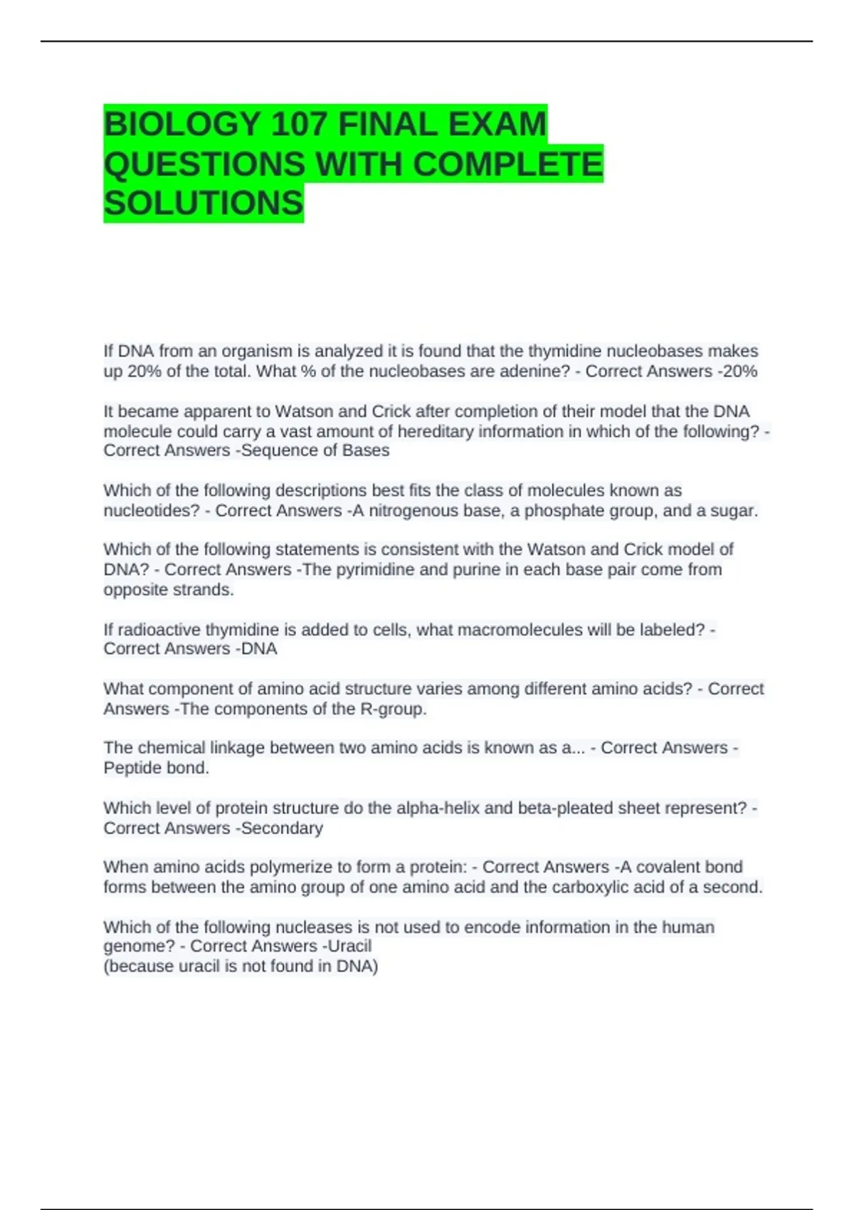 Correct Answers -DNA